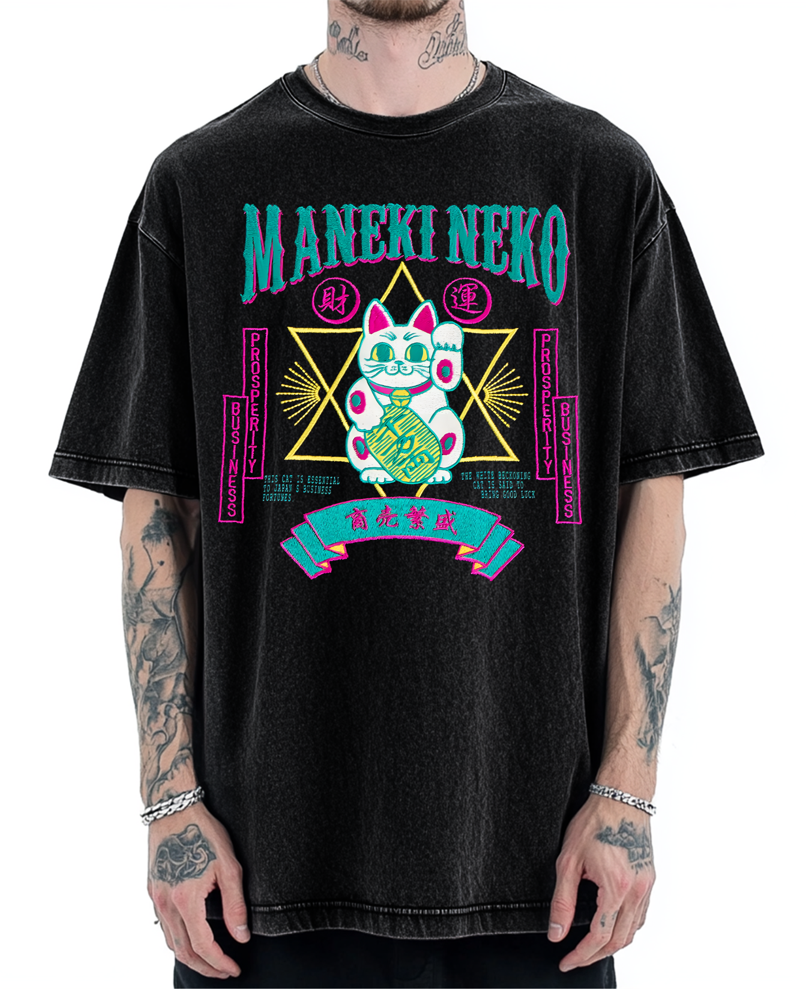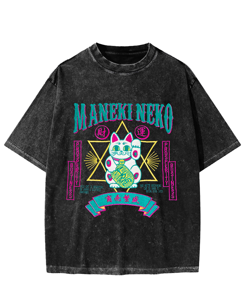 Maneki Neko Lucky Cat Vintage Washed T-shirt