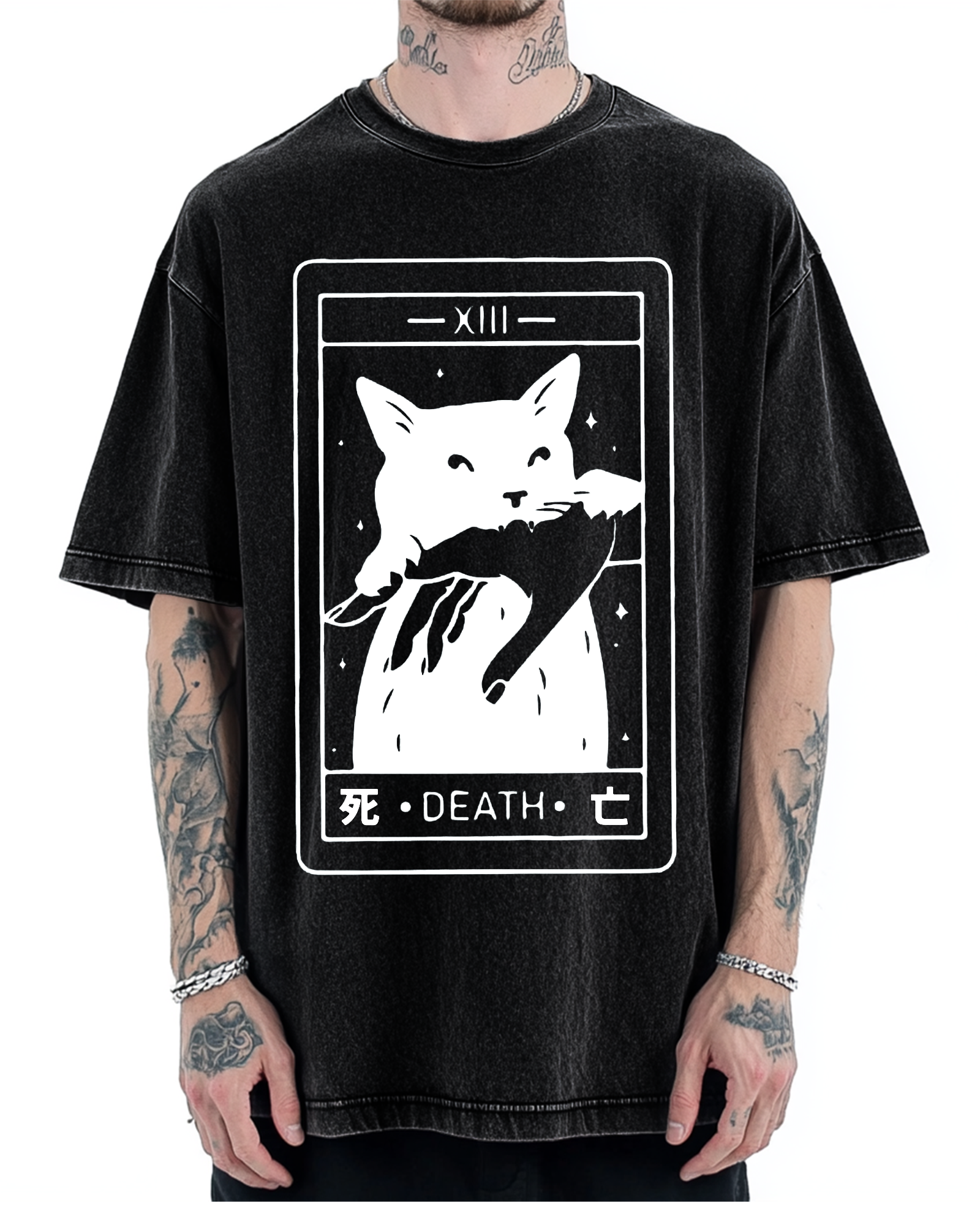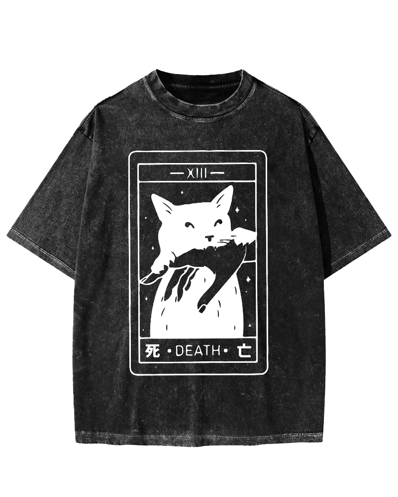 Gothic Lucky Cat Skull Vintage Washed T-shirt