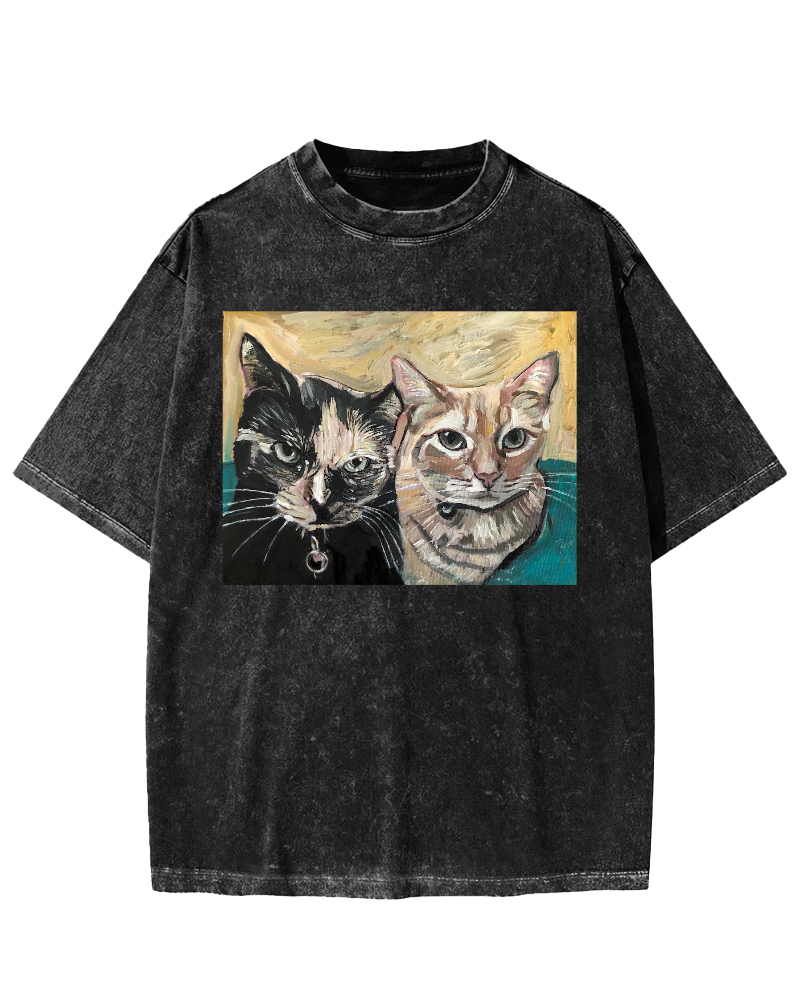 Sleeping Cat Oil Painting Style Vintage Washed T-shirt