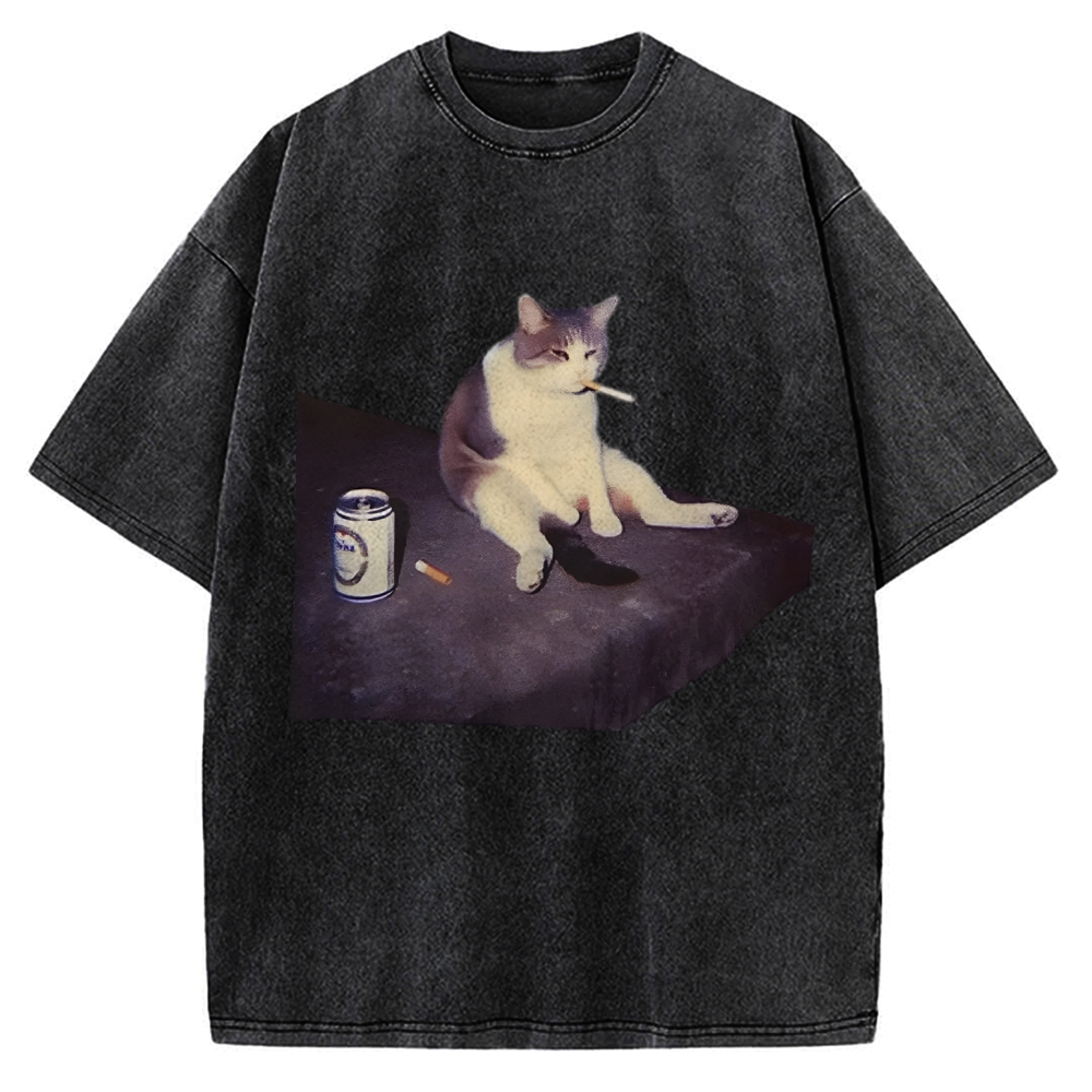 I Don't Give A Cat Funny Vintage Washed T-shirt