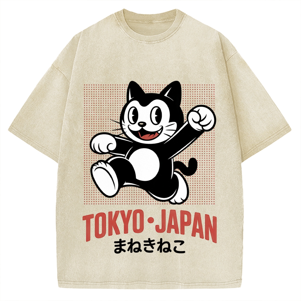 Lucky Cat Tokyo Japan Vintage Washed T-shirt