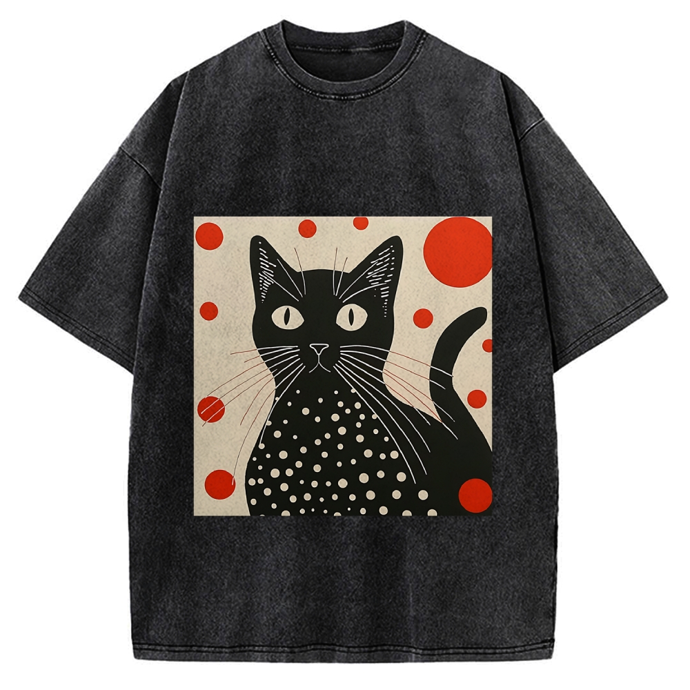 Kusama Black Cat Polka Dot Vintage Washed T-shirt