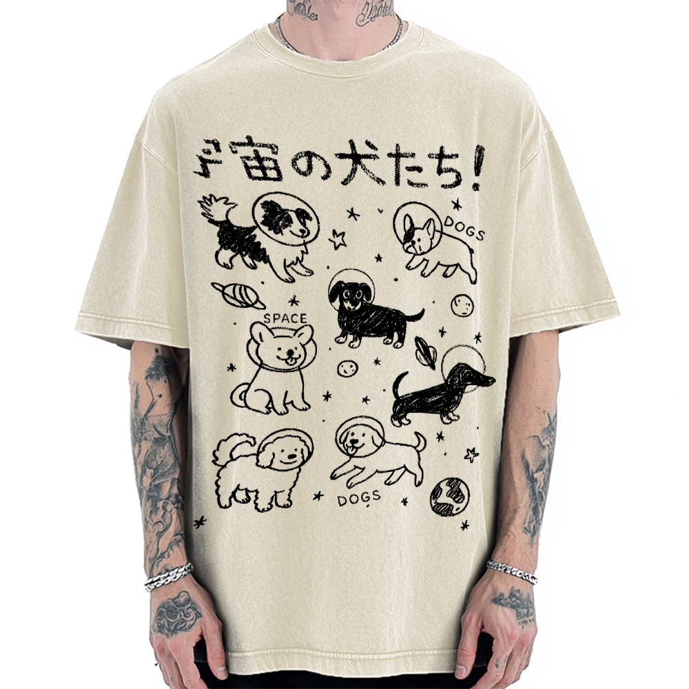 Cat In Space Funny Kawaii Japanese Vintage Washed T-shirt