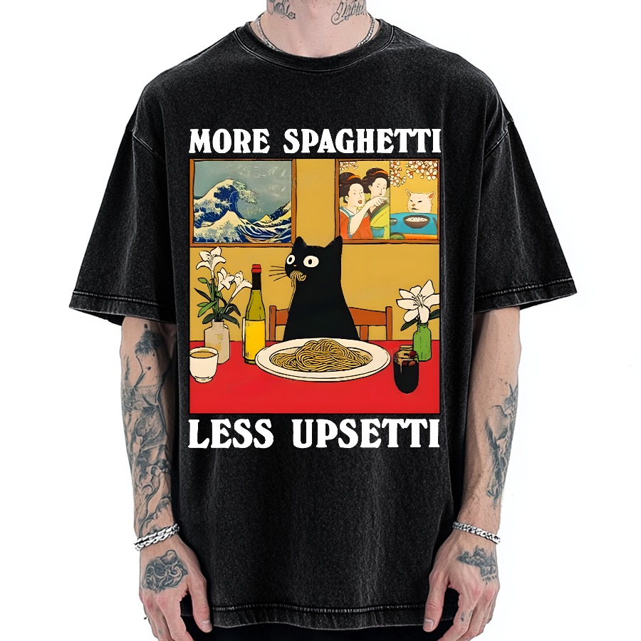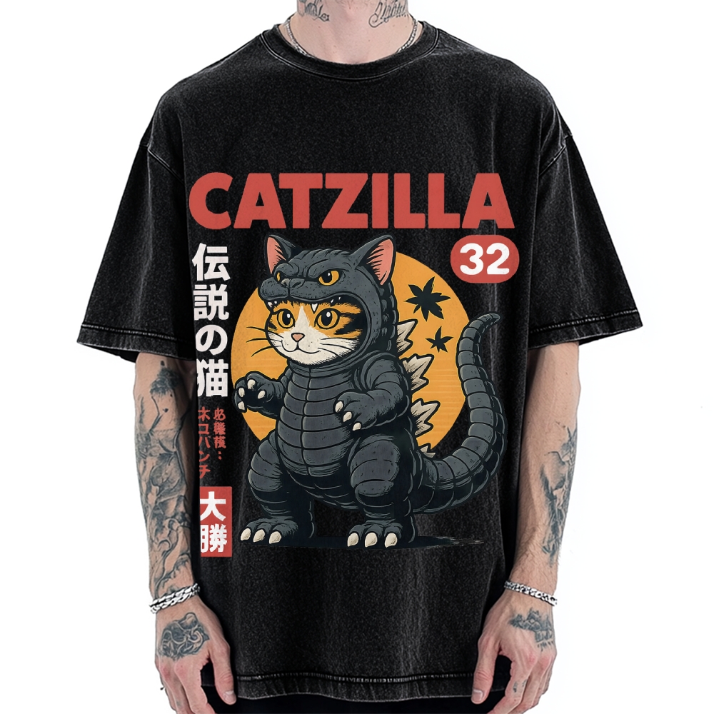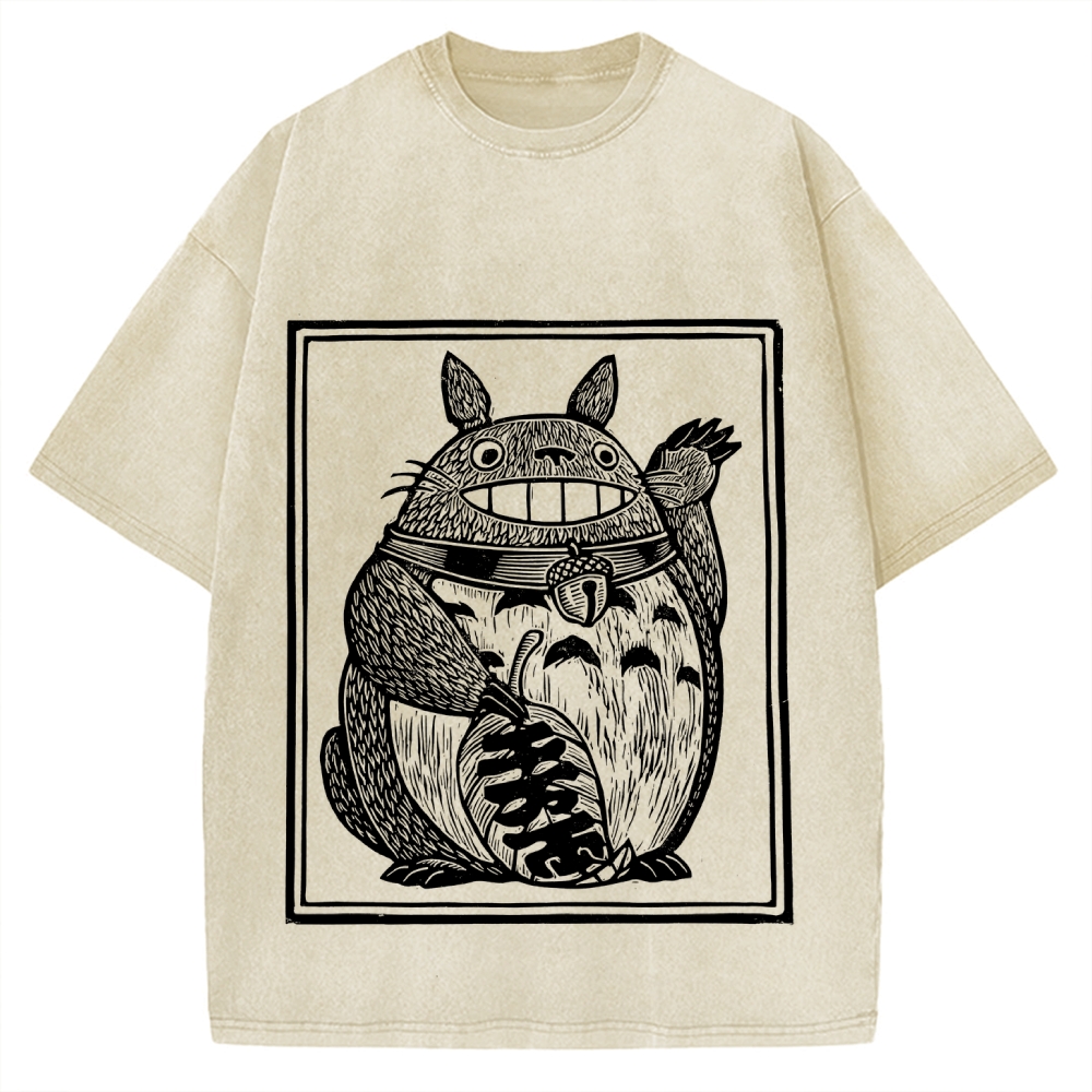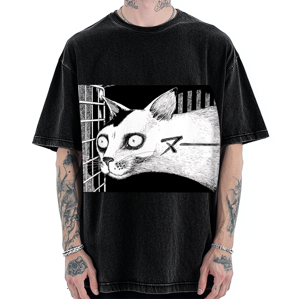 Printmaking style Japanese Anime Lucky Cat Vintage Washed T-shirt