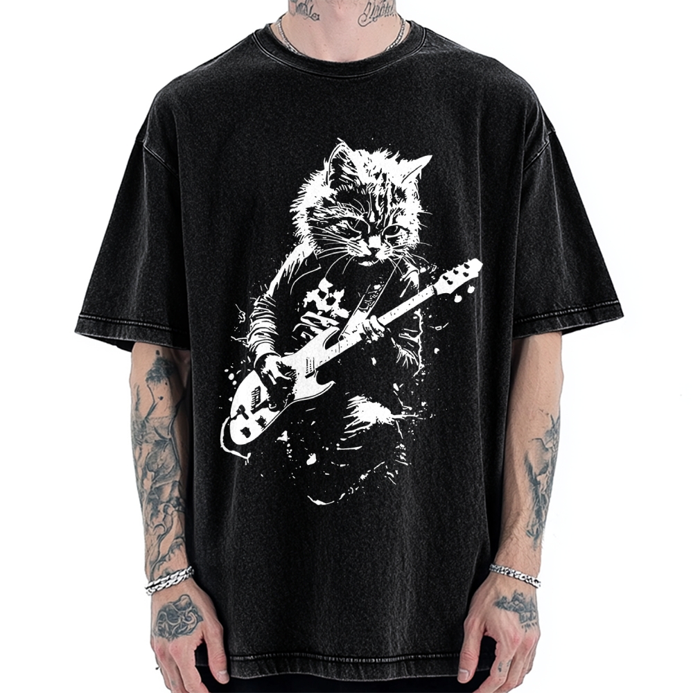 Funny Cat Playing Guitar Vintage Washed T-shirt