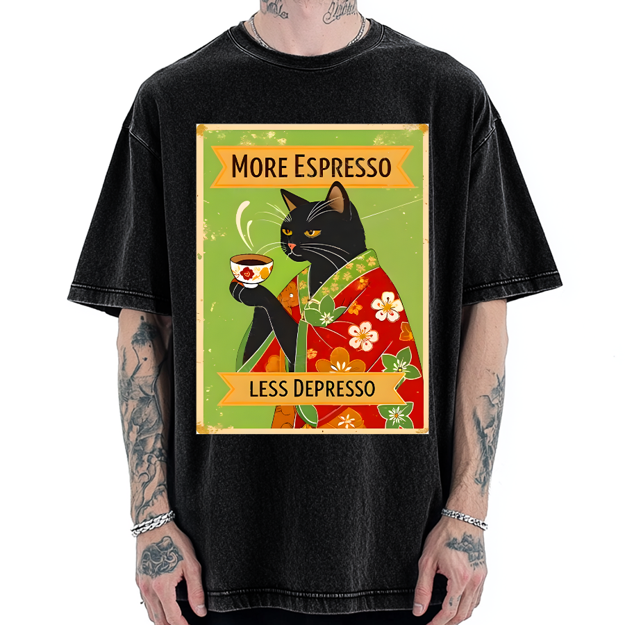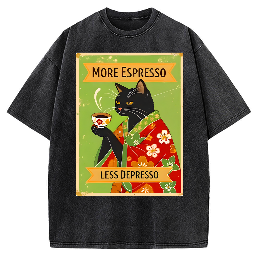 More Espresso Less Depresso Coffee Cat Vintage Washed T-shirt