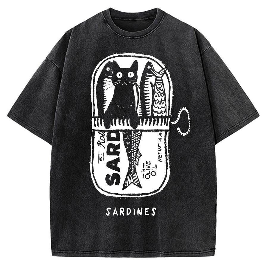 Cat Hiding In A Sardine Can Vintage Washed T-shirt