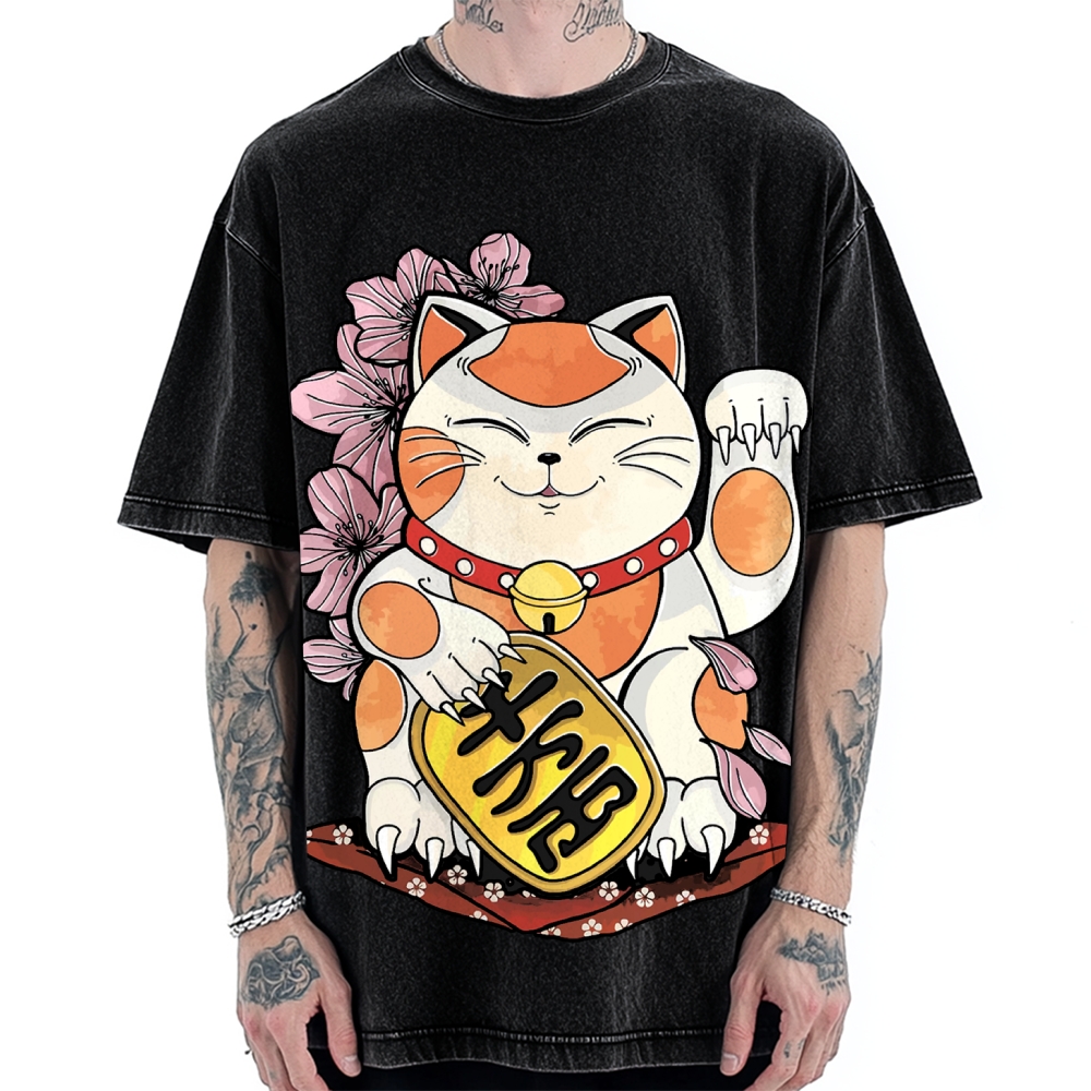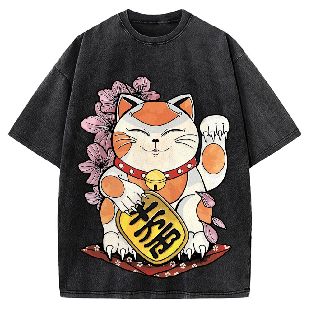 Christmas Tree Cat Japan Vintage Washed T-shirt
