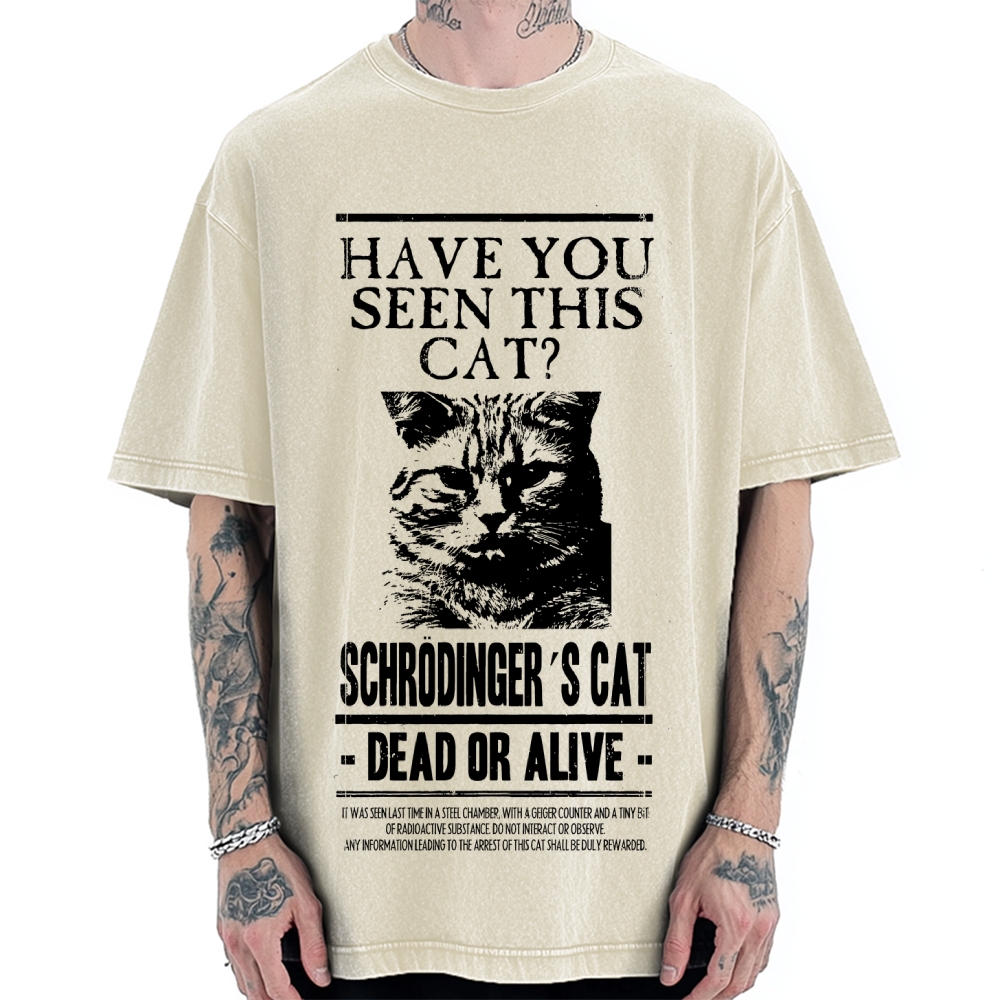 Wanted Schrodingers Cat Art Vintage Washed T-shirt