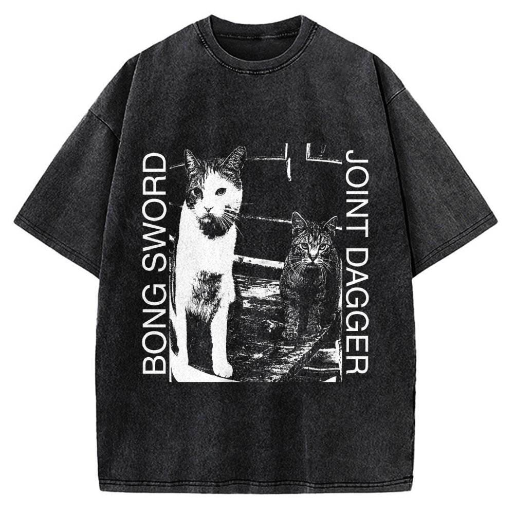Joint Dagger Bong Sword Funny Cats Vintage Washed T-shirt