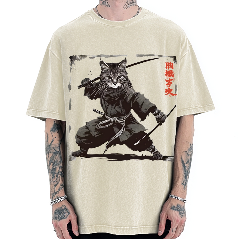 Paralyzed Japanese Samurai Cat Vintage Washed T-shirt