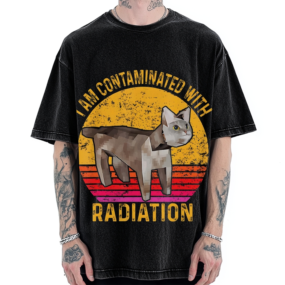 I Am Contaminated With Radiation Japanese Cat Meme Vintage Washed T-shirt