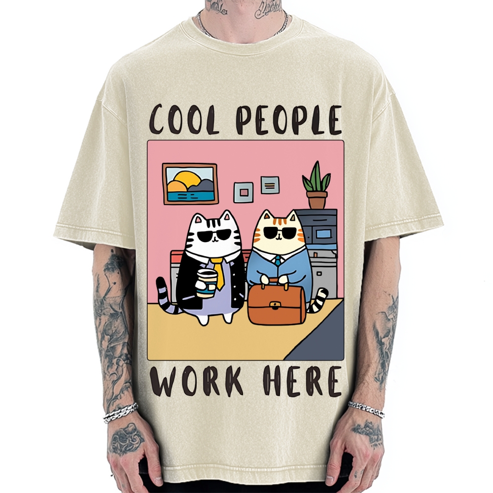 Cool People Work Here Cat Vintage Washed T-shirt