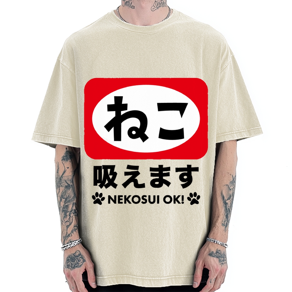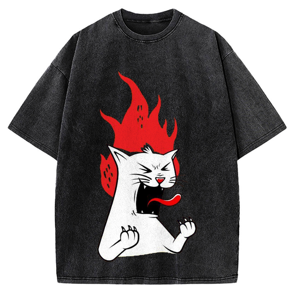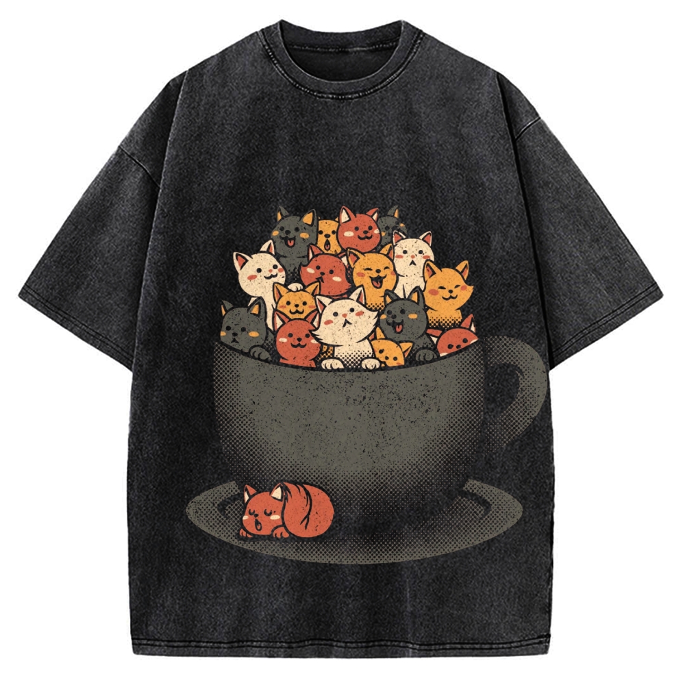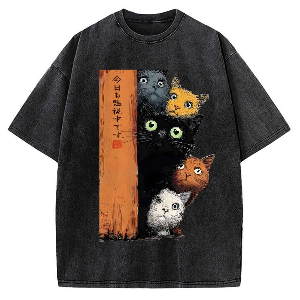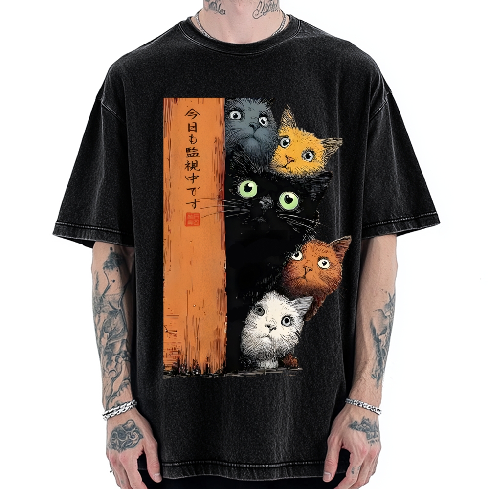 Japanese Style Anime Cats Vintage Washed T-shirt