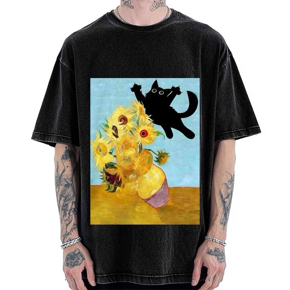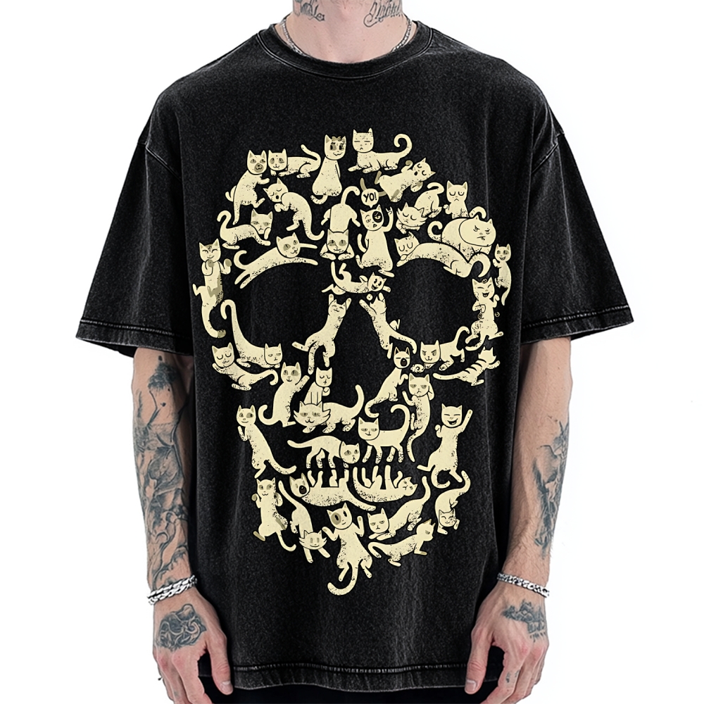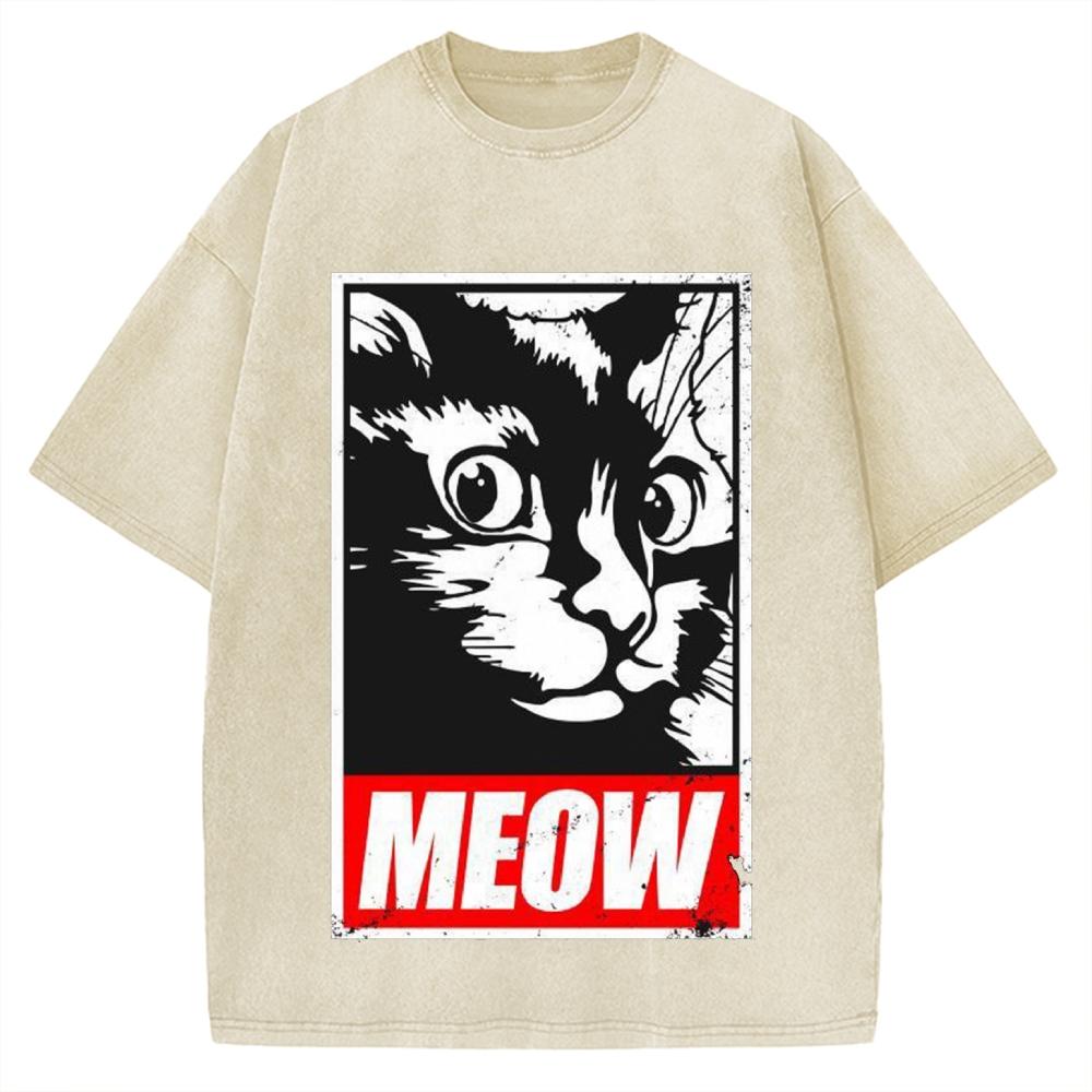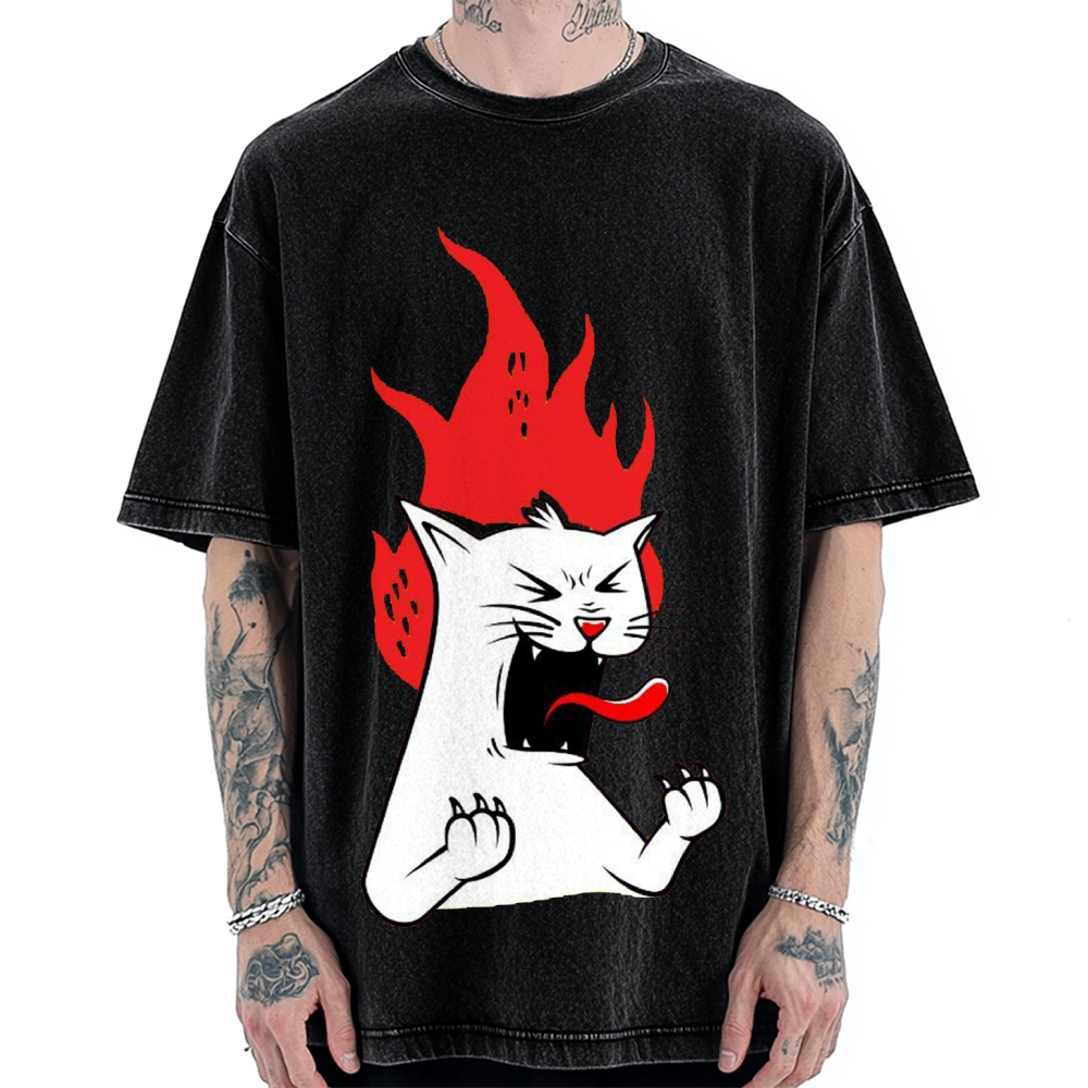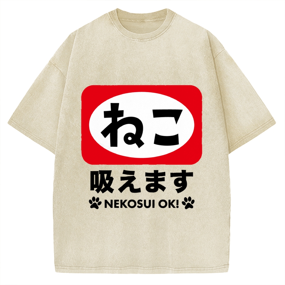 Japanese Style Anime Cats Vintage Washed T-shirt