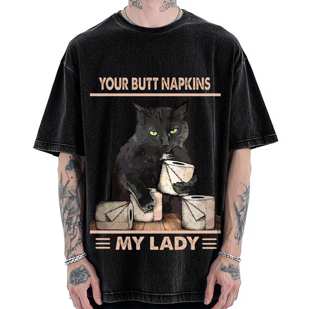 Your Butt Napkins My Lady Funny Cat Vintage Washed T-shirt