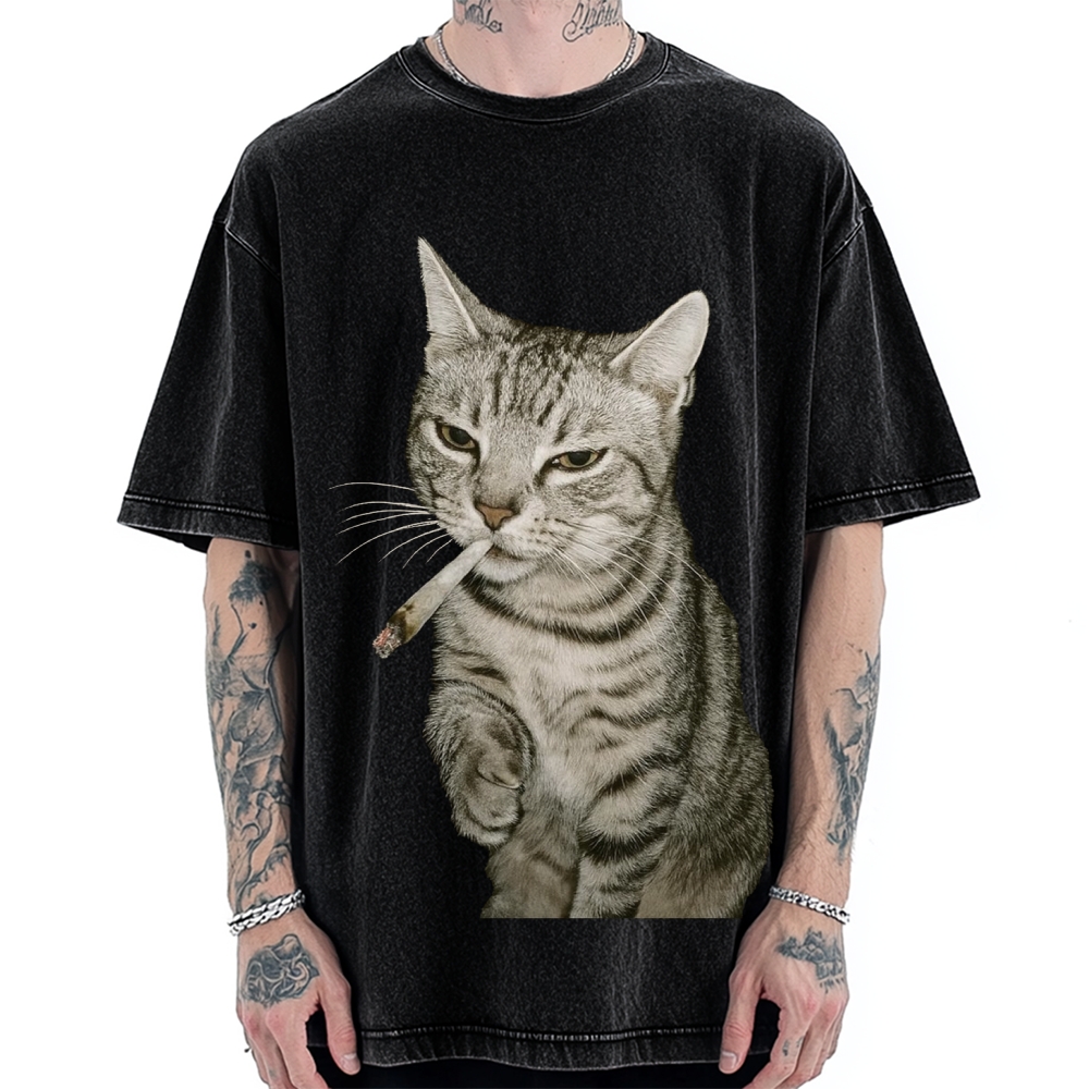 Vintage Smoking Cat Meme Vintage Washed T-shirt