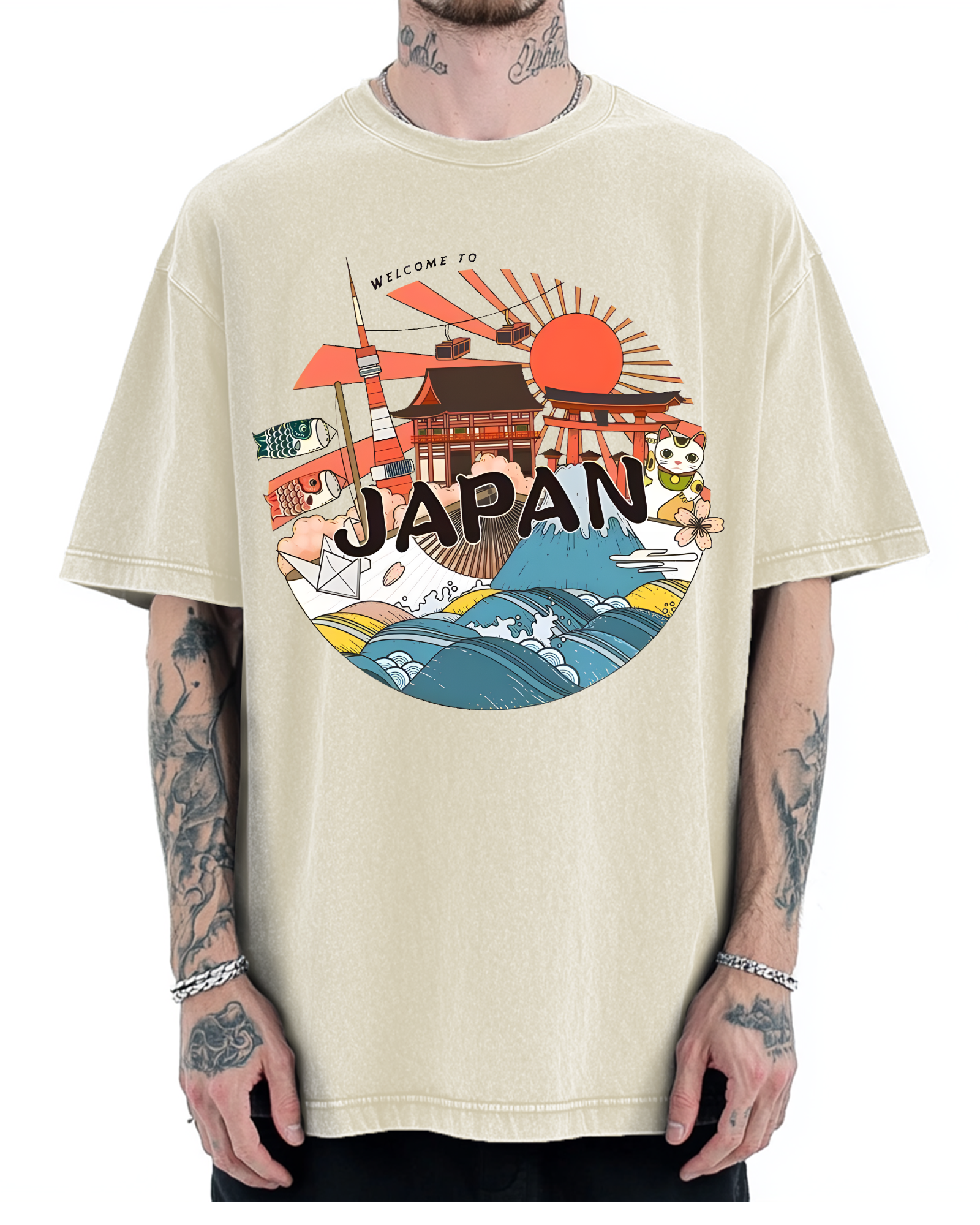 Japanese Personalized Abstract Patterns Vintage Distressed T-shirt