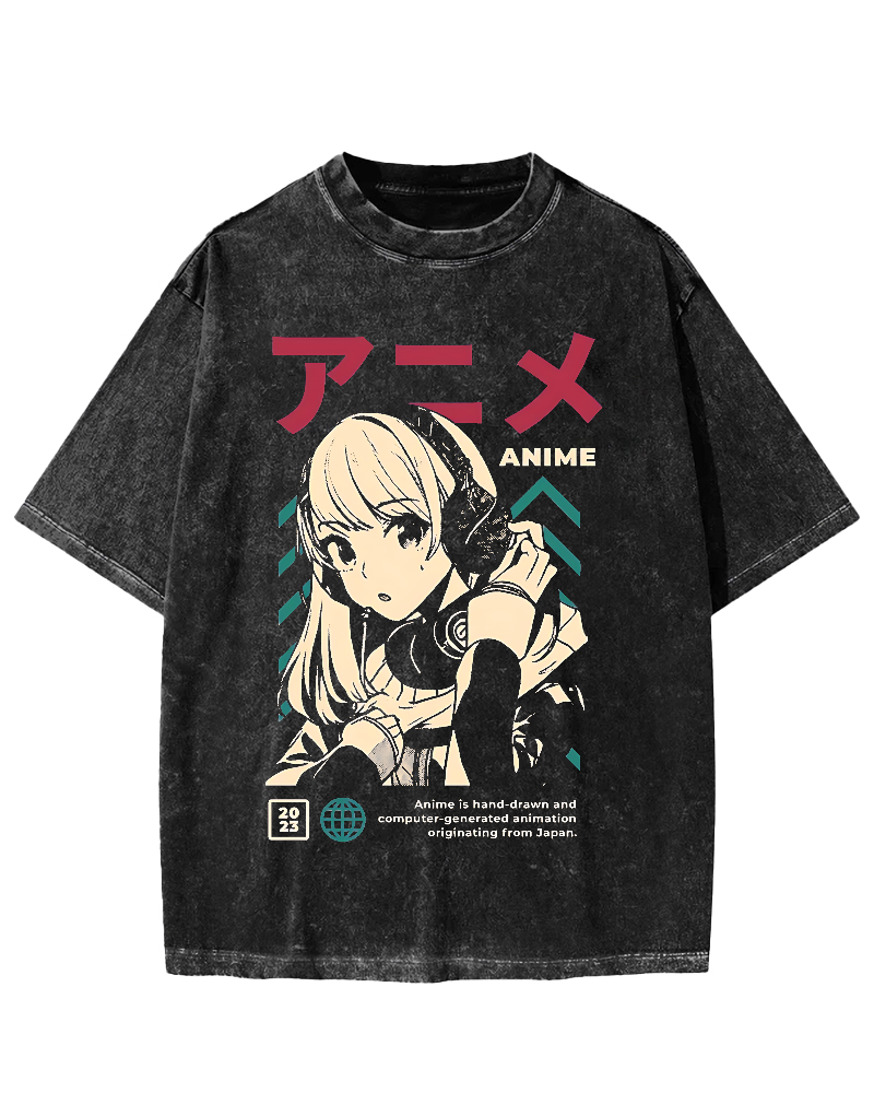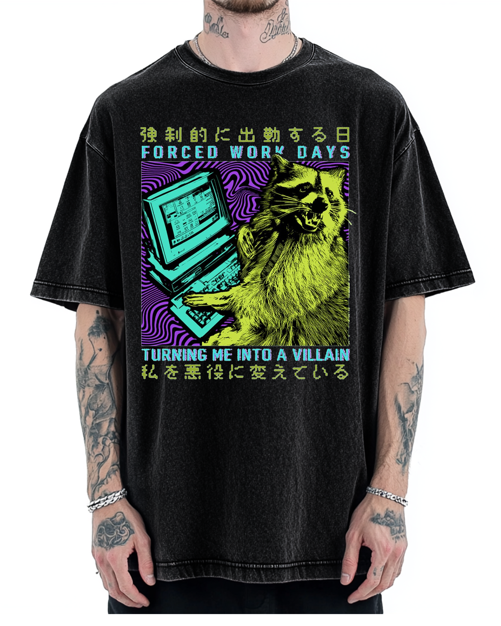 Japanese Cute Animal Pattern Vintage Distressed T-shirt