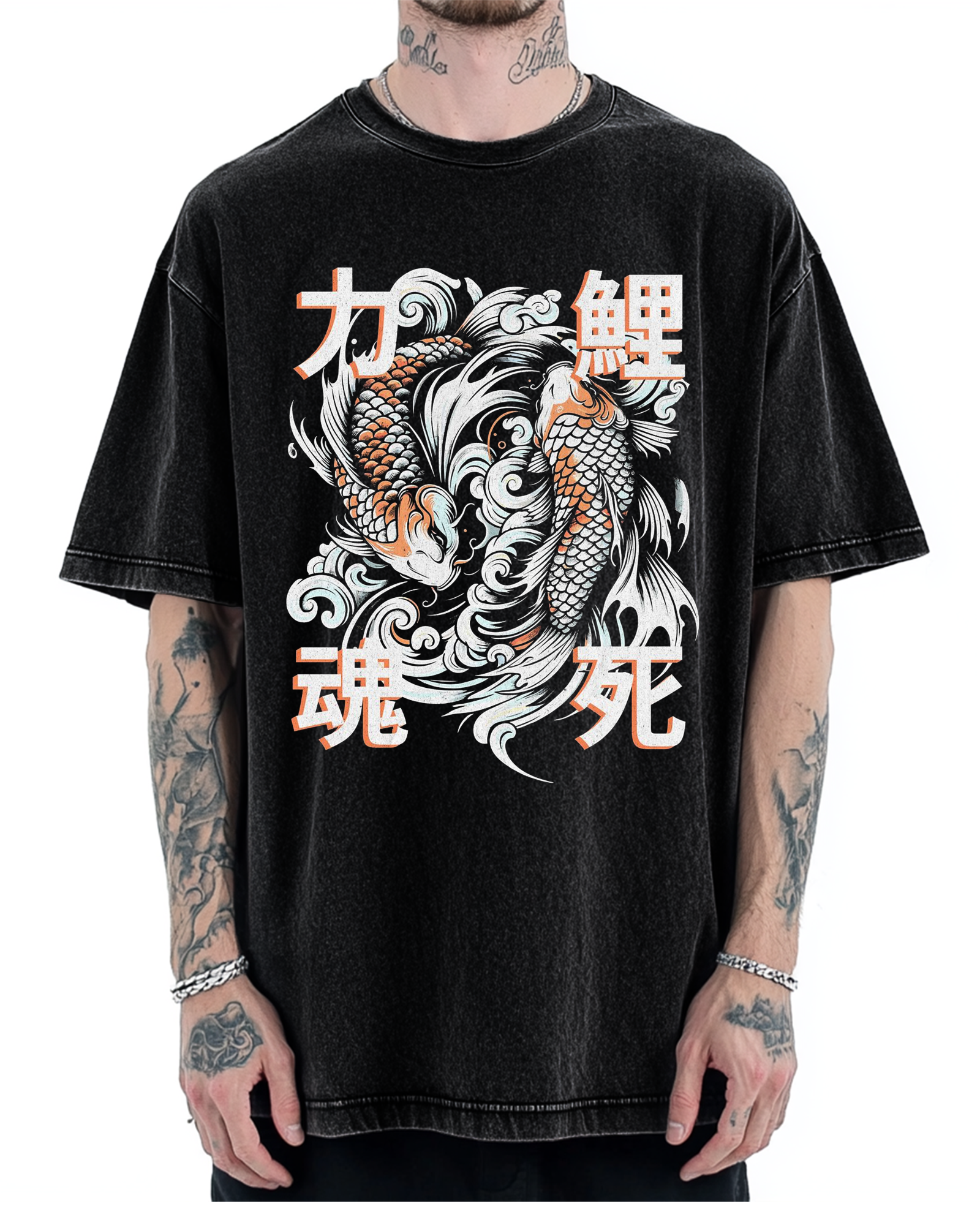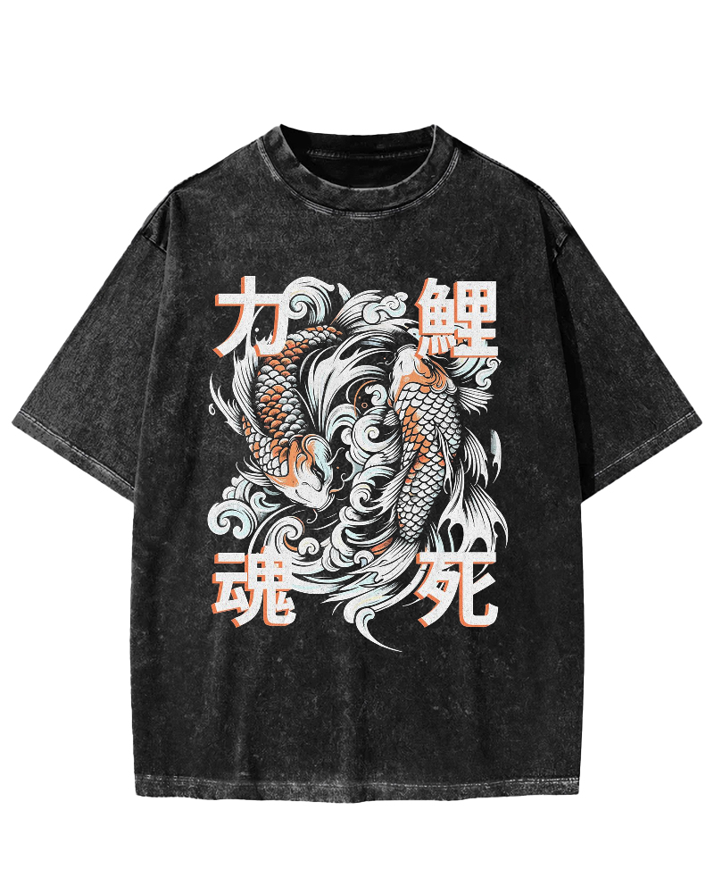 Japanese Ocean Fish Pattern Vintage Distressed T-shirt