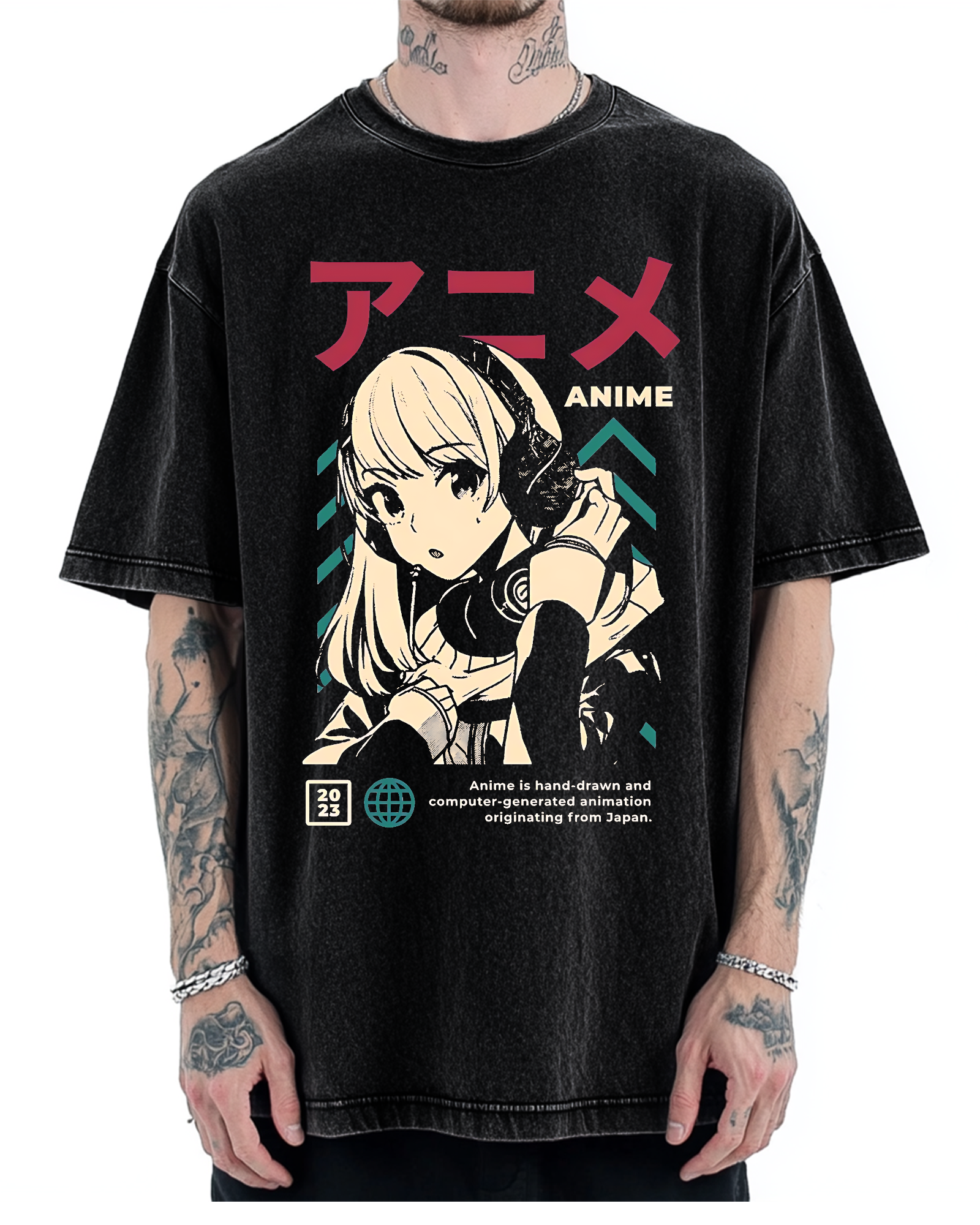 Japanese Style Tuna Pattern Vintage Distressed T-shirt