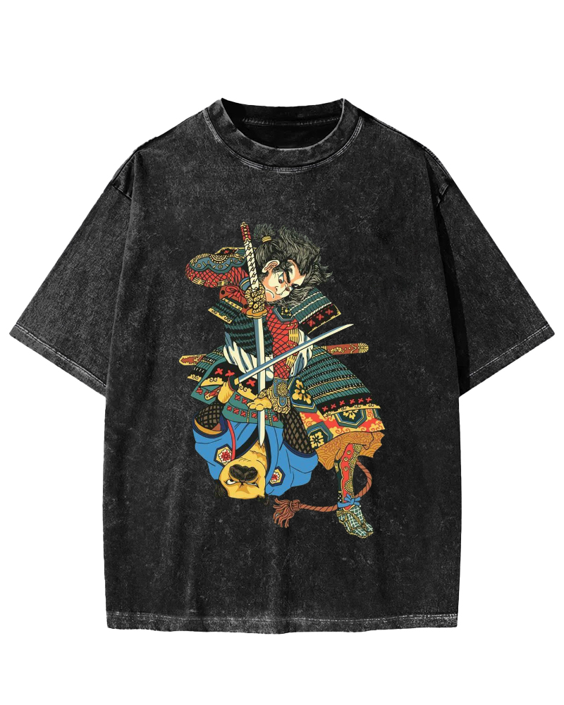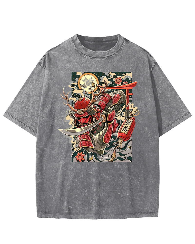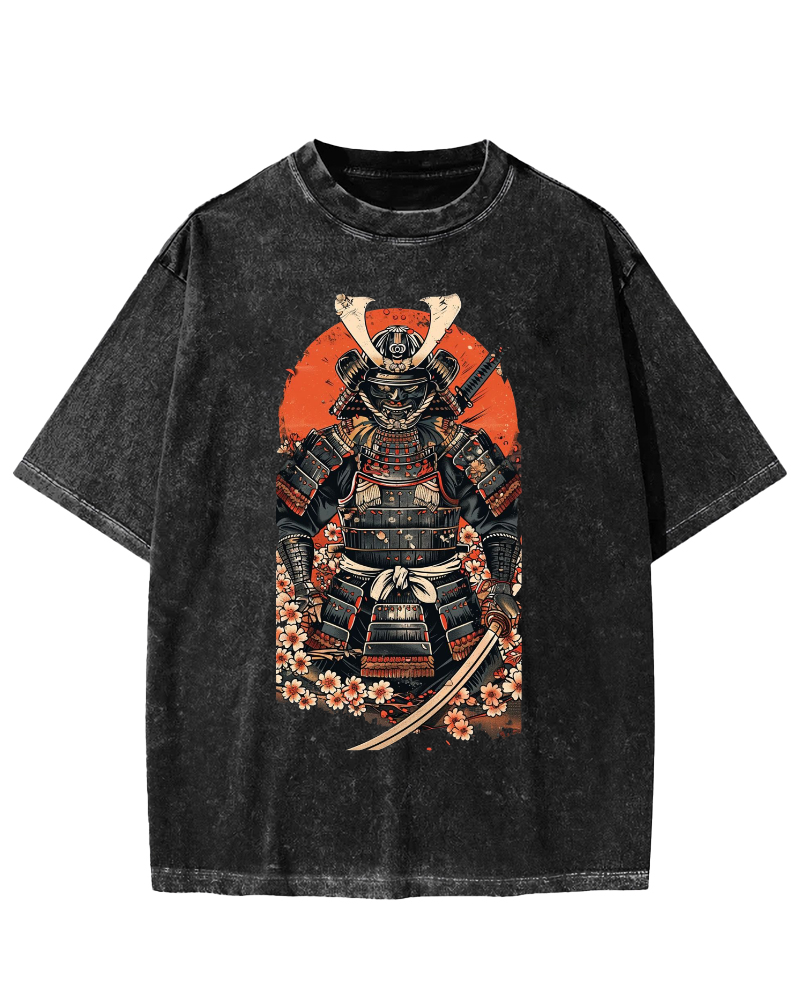 Hinomaru and Japanese samurai Vintage Washed T-shirt