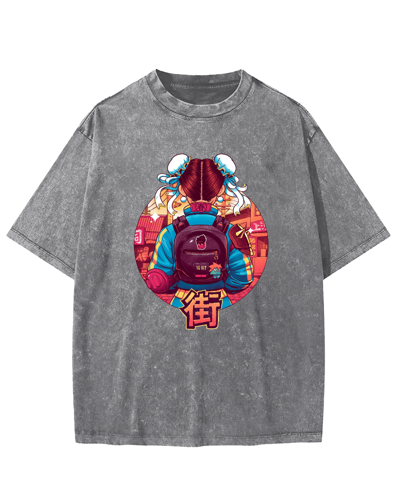 Japanese Samurai Girl Scenery Vintage Sakura Vintage Washed T-shirt