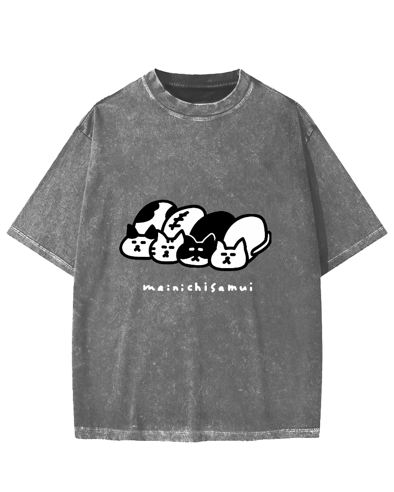Fuji Mountain Cat Moon Vintage Washed T-shirt