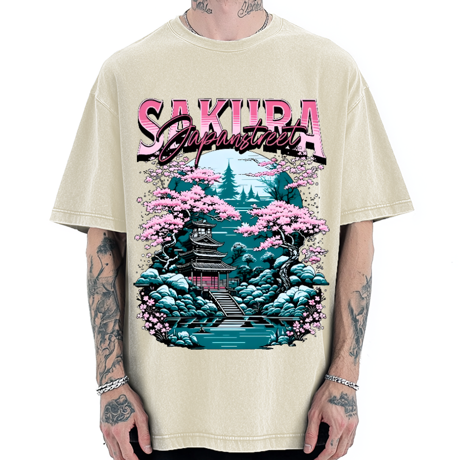 Japanese Twin Ponytail Girl Vintage Washed T-shirt