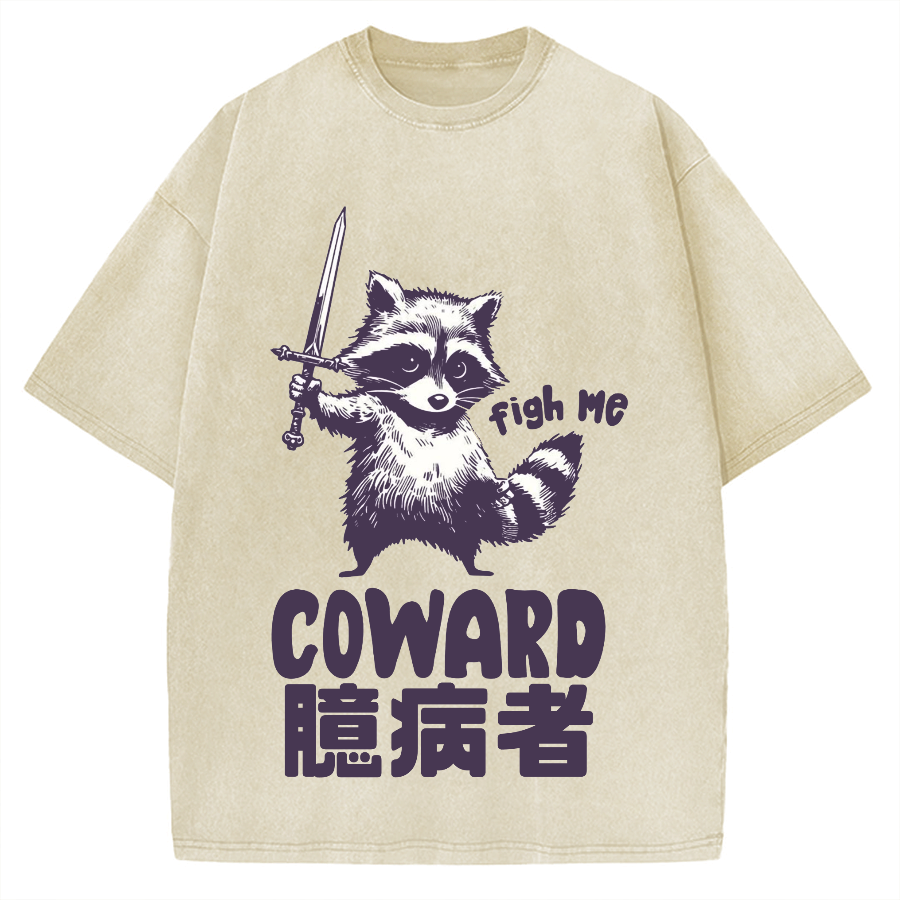 Figh me Coward Raccoon Vintage Washed T-shirt