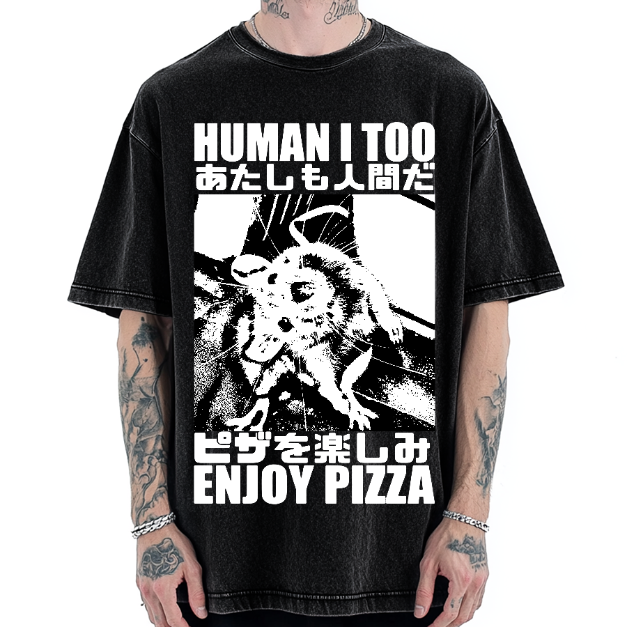 Human I Too Enjoy Pizza Mouse Vintage Washed T-shirt