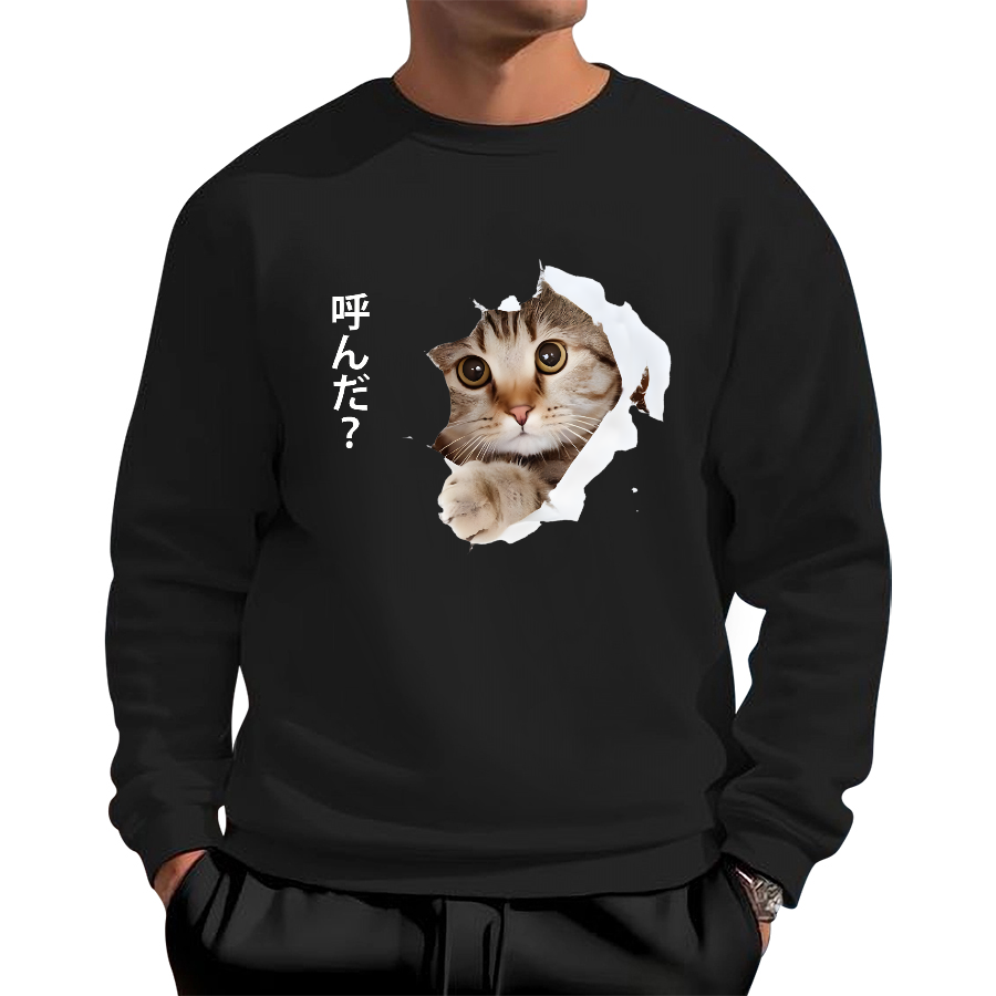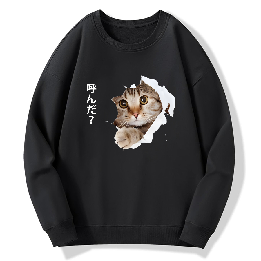 Cute Cat Japanese Art Cotton Pullover Sweatshirt