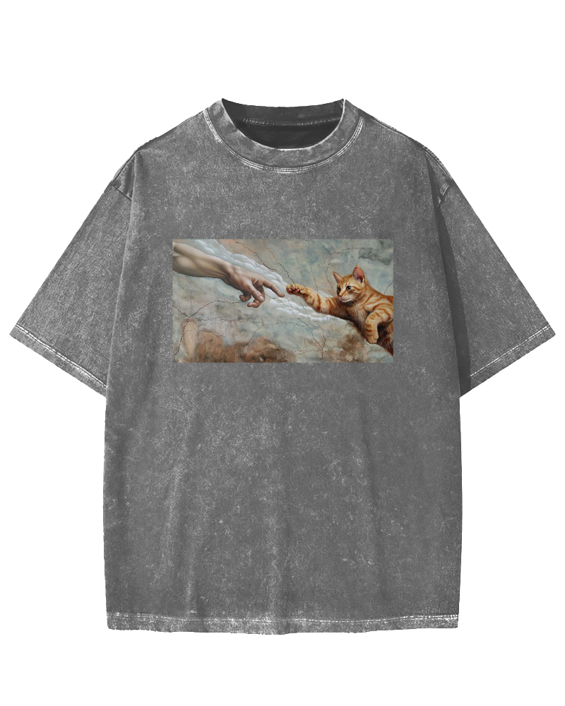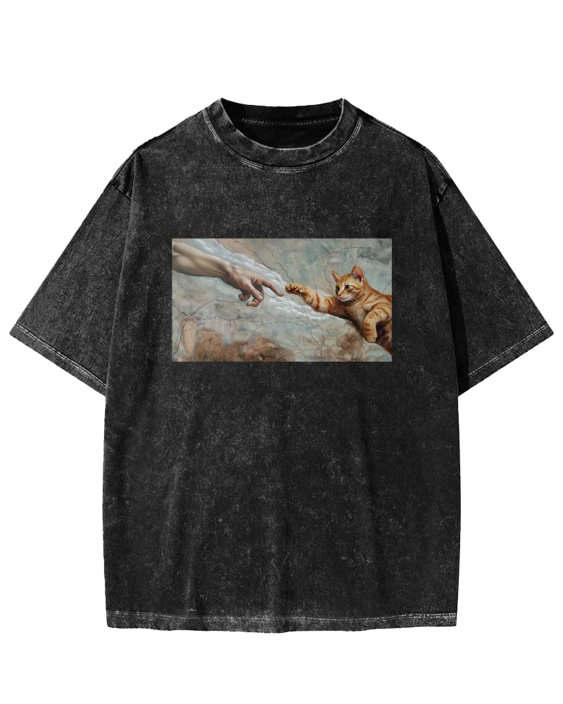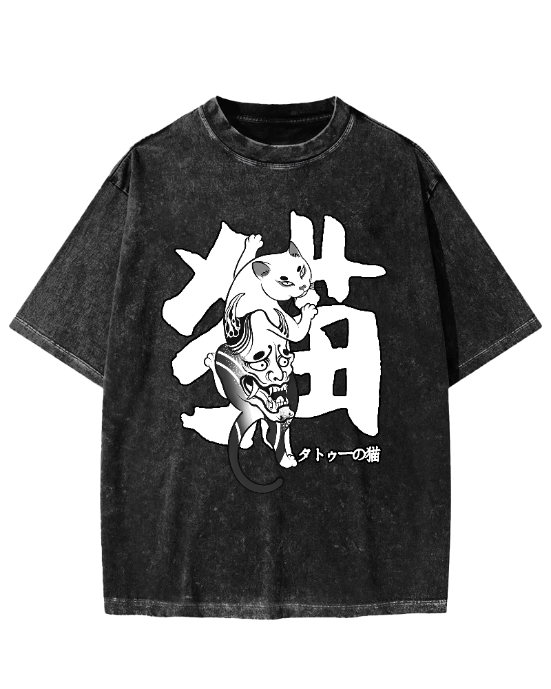 Cat With Oni Mask Tattoo Vintage Washed T-shirt