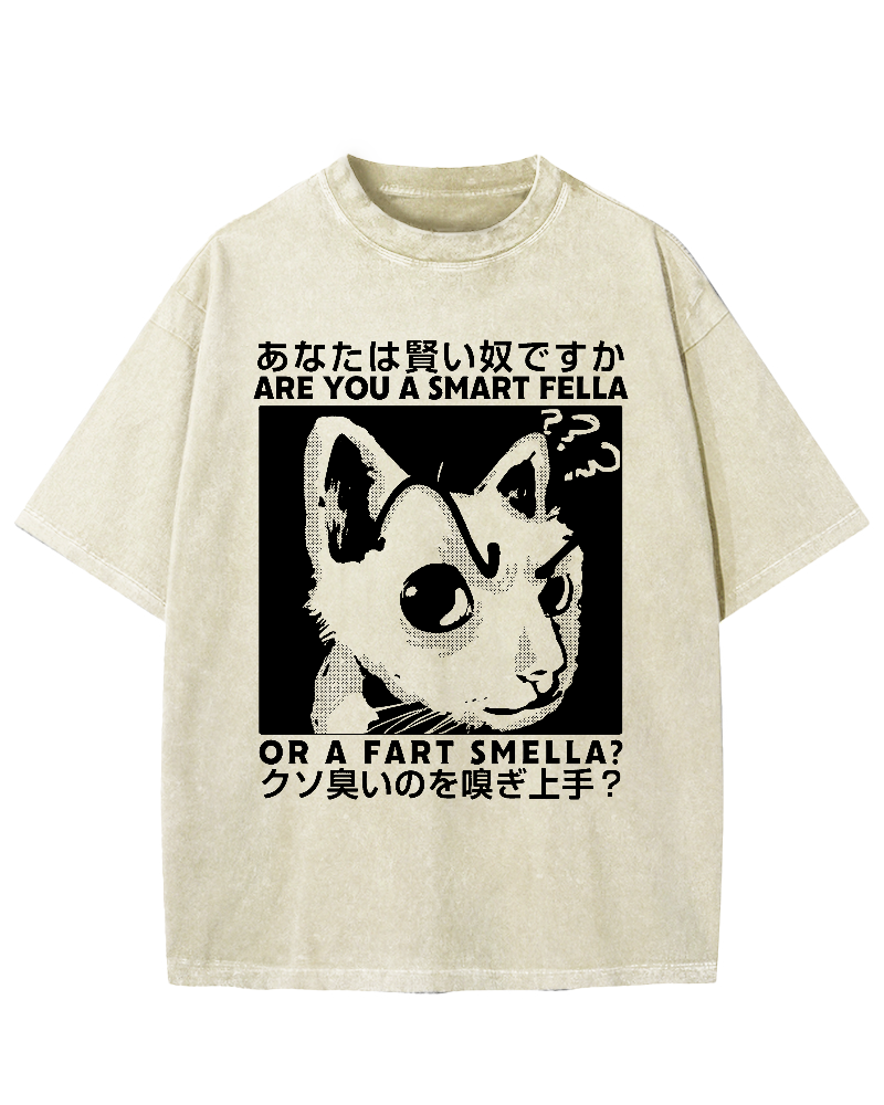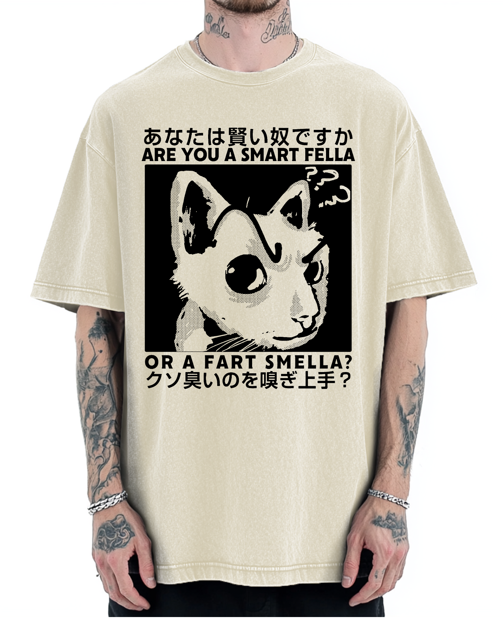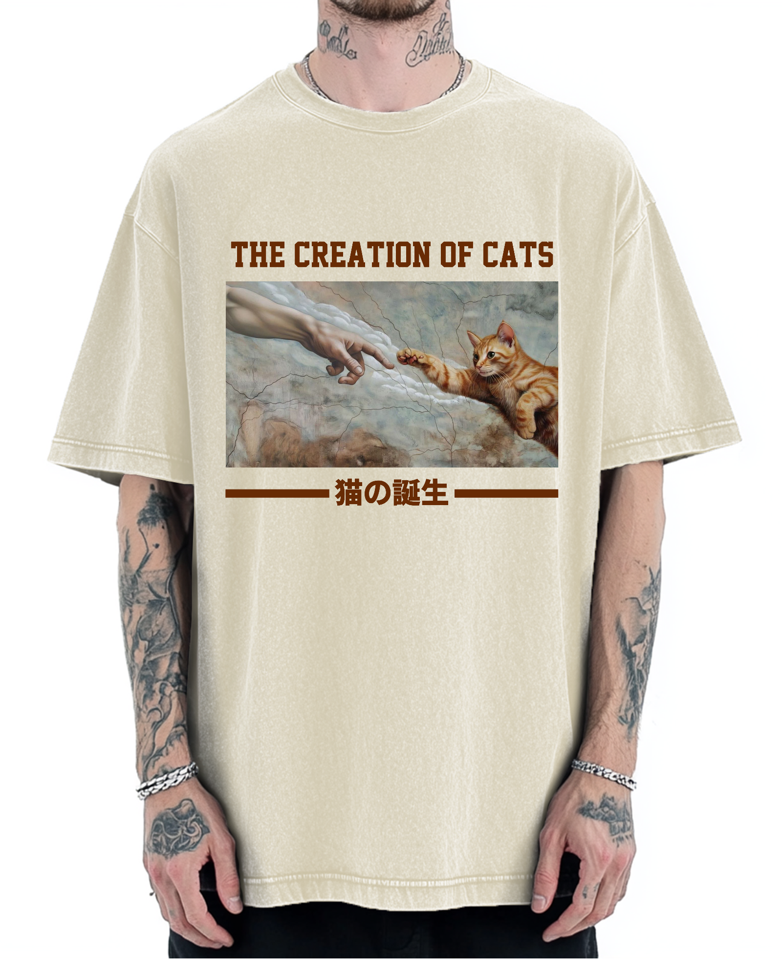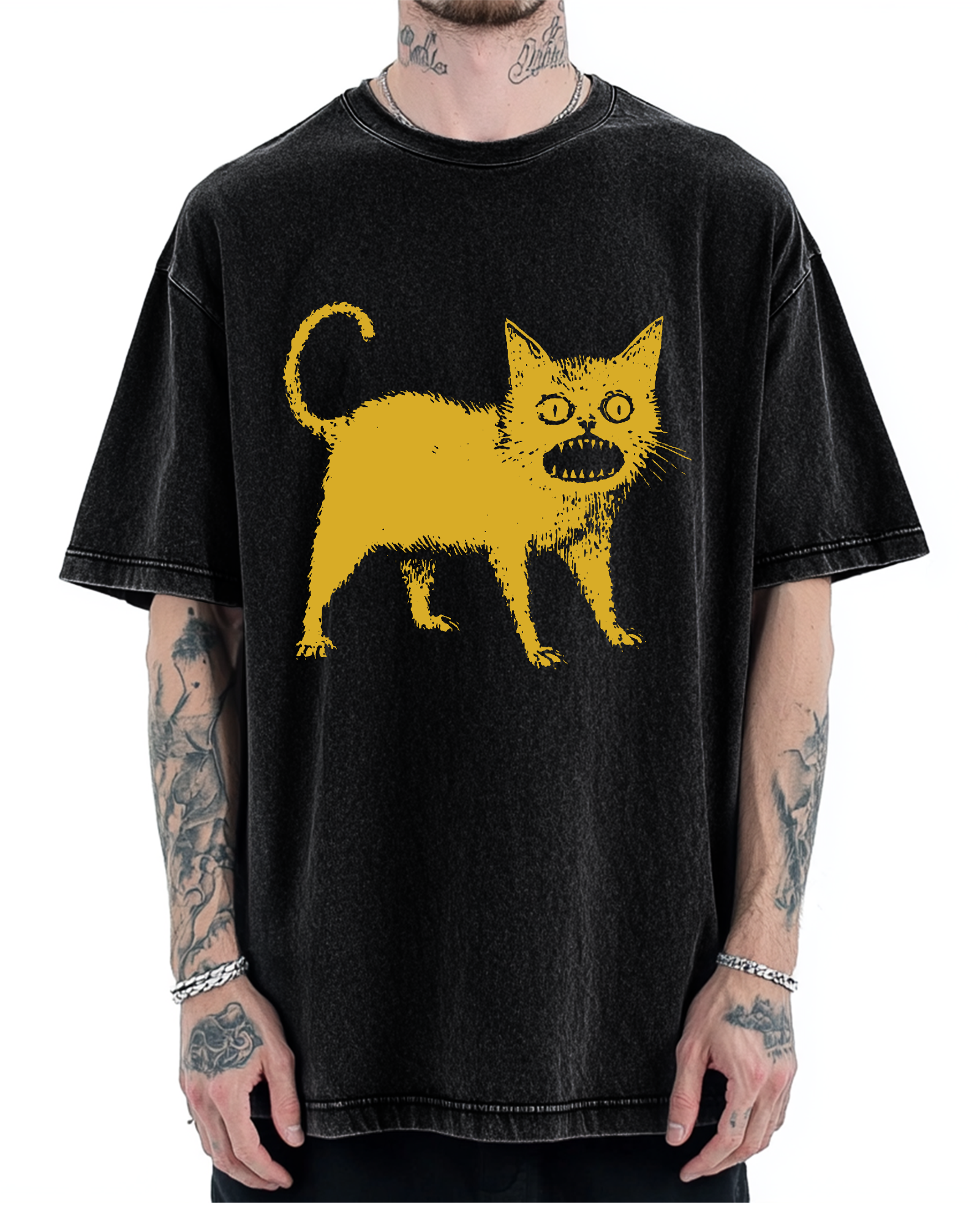 Japanese Mischievous Cat Pattern Vintage Distressed T-shirt