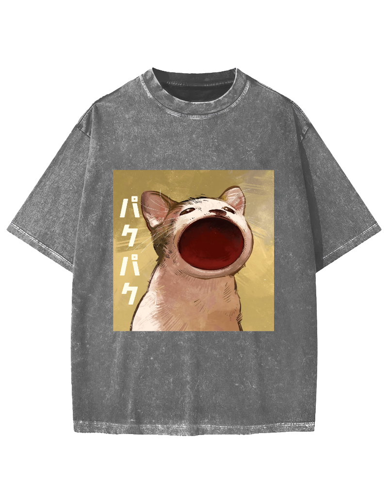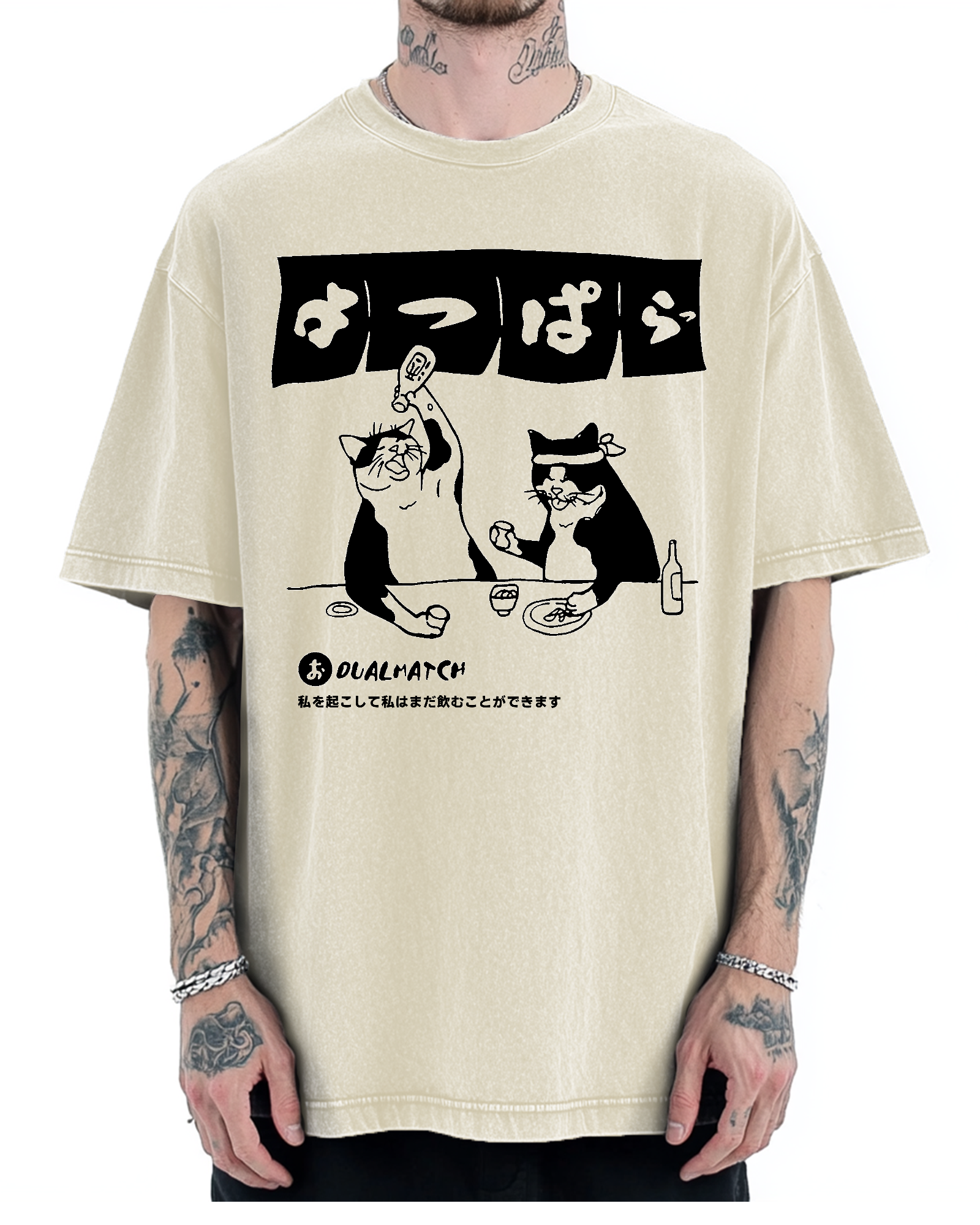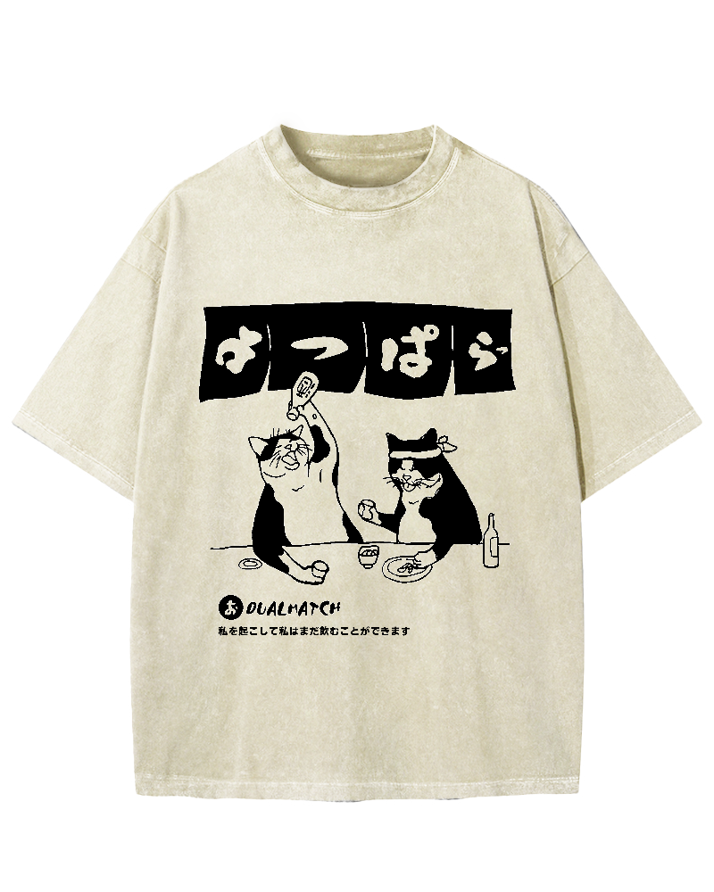 Wake me up I can still drink Cat Izakaya Back printing Vintage Washed T-shirt