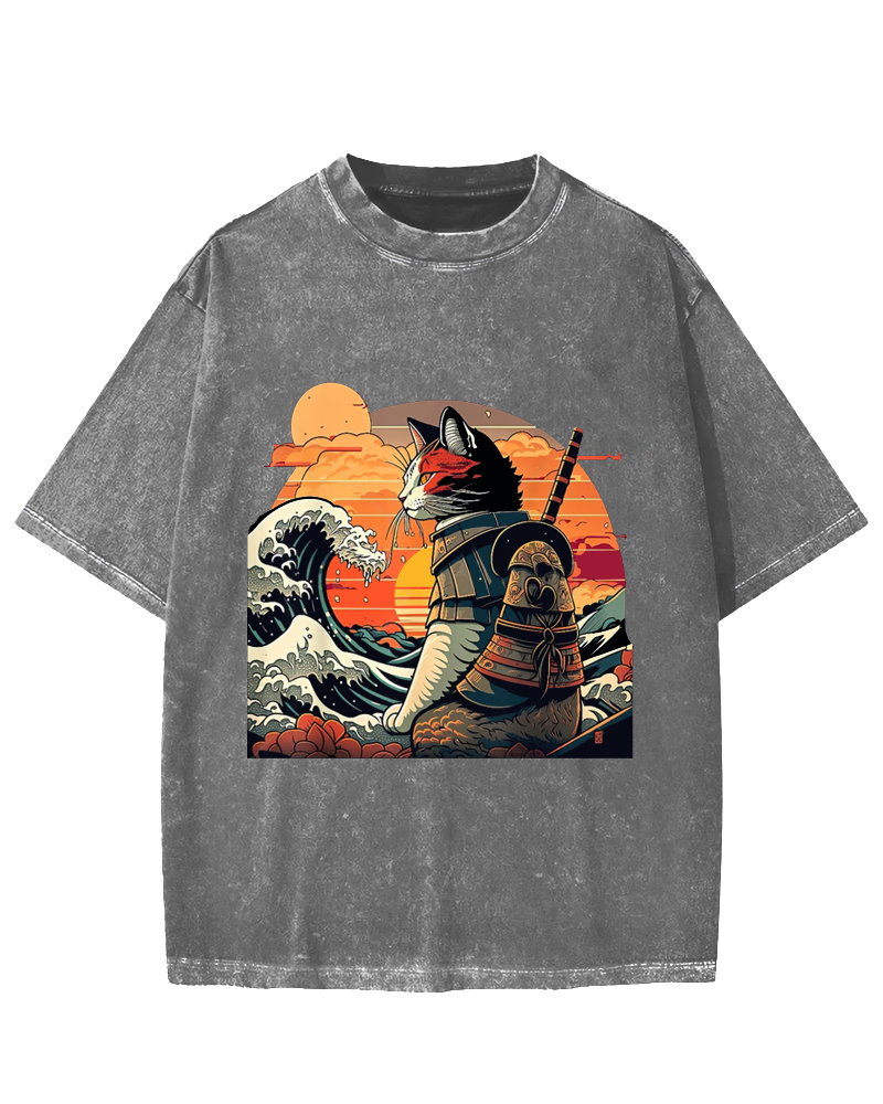Catzilla Cat Japanese Art Vintage Distressed T-shirt