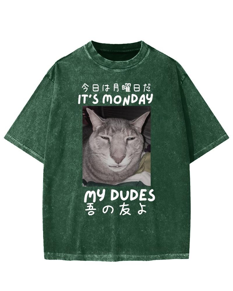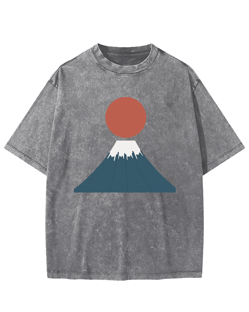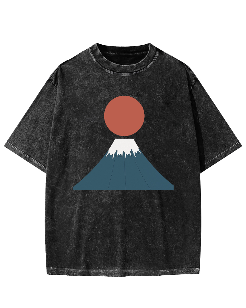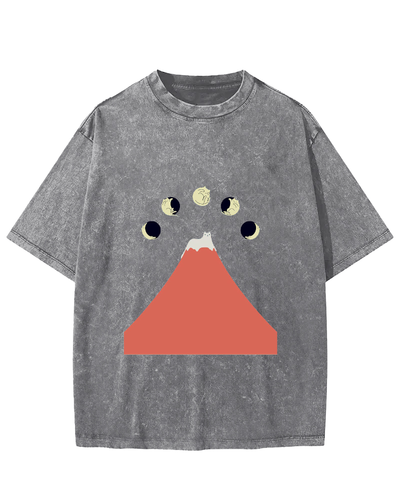 Fuji Mountain Cat Moon Vintage Washed T-shirt