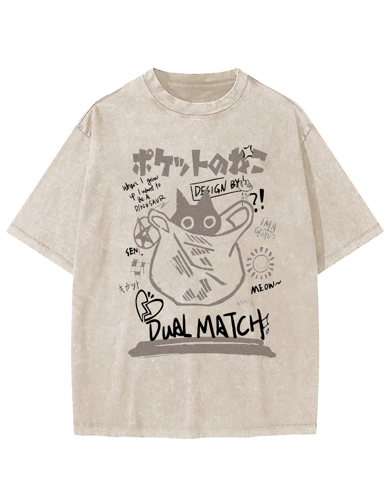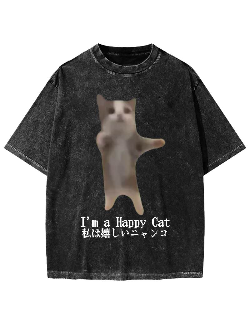 Happy Happy Happy Cat Vintage Washed T-shirt