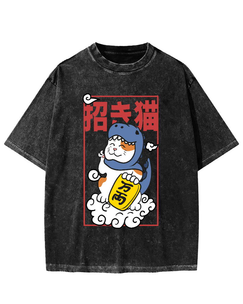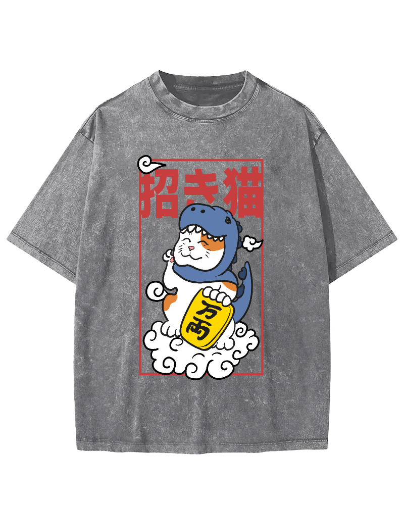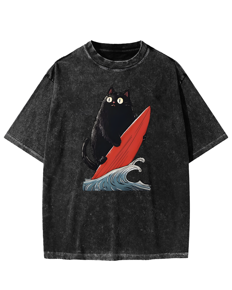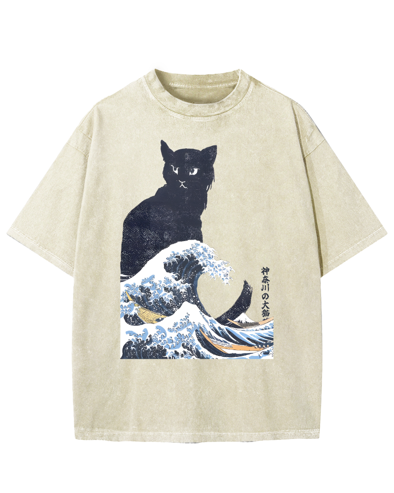 The Great Wave Off Cat Vintage Washed T-shirt