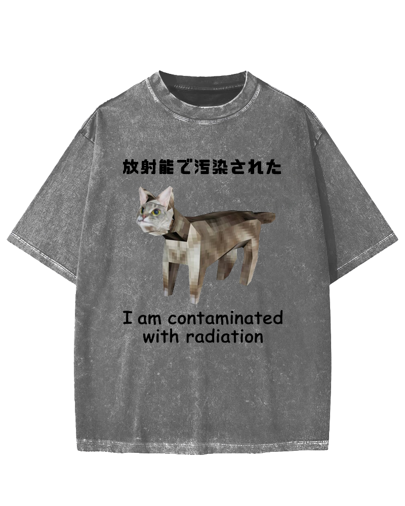 Cat Contaminated By Radiation Vintage Washed T-shirt
