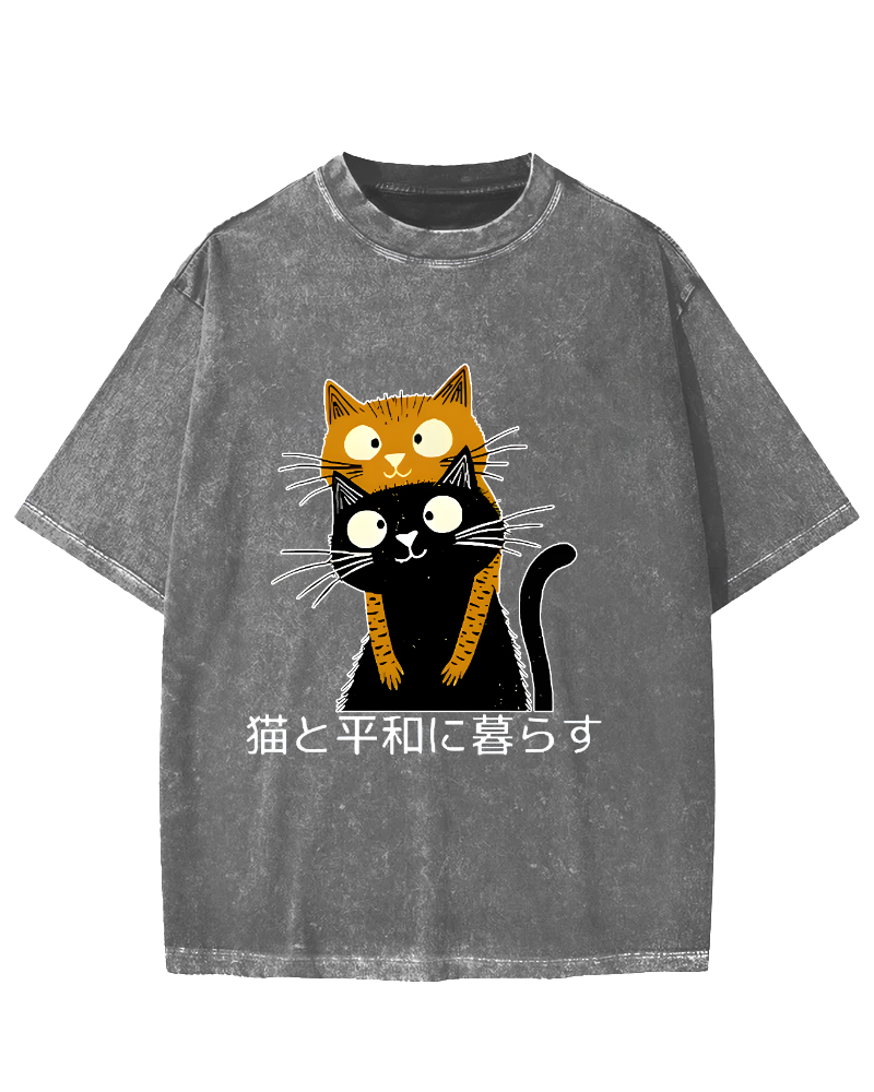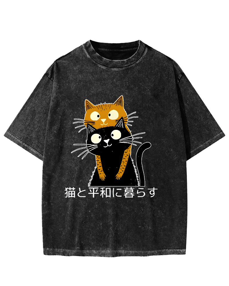Live Peacefully With Cats Vintage Washed T-shirt