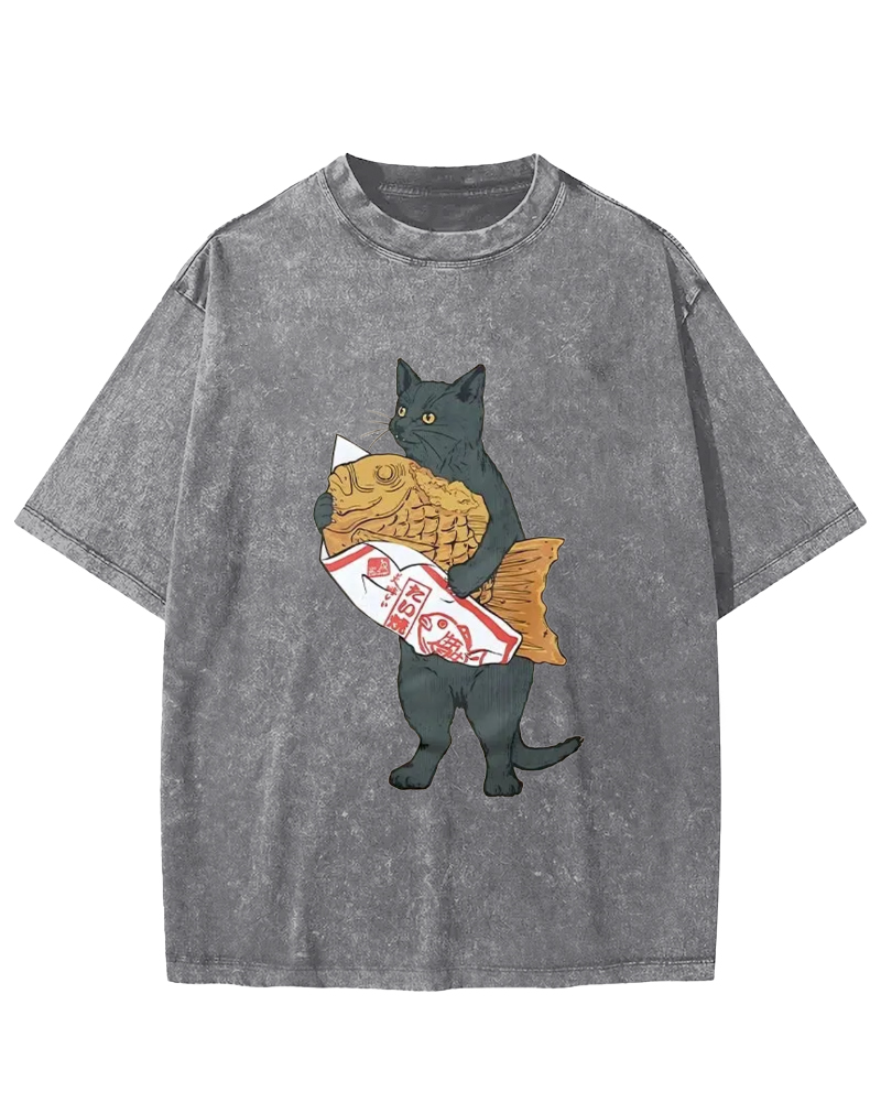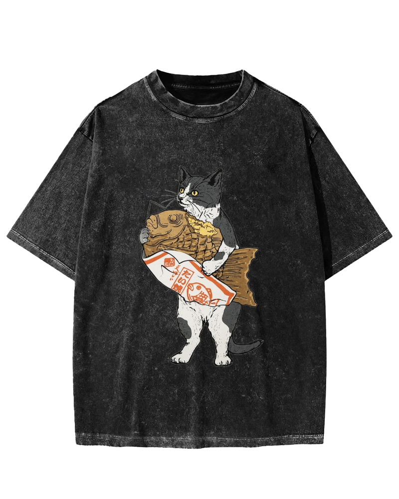Bicolor cat holding taiyaki Vintage Washed T-shirt