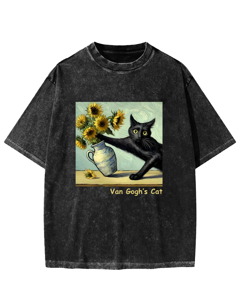 Van Gogh's Naughty Cat Vintage Washed T-shirt