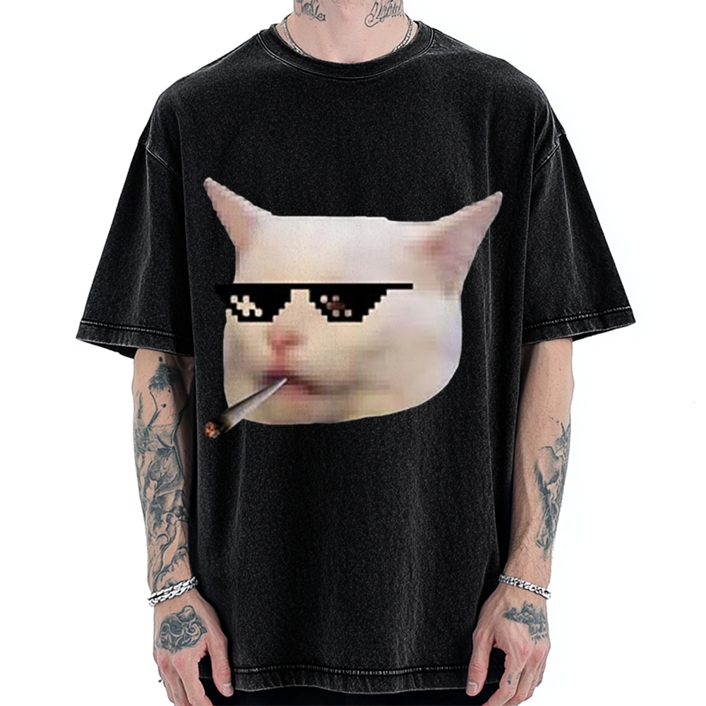 Smoking Cool Meme Cat Vintage Washed T-shirt