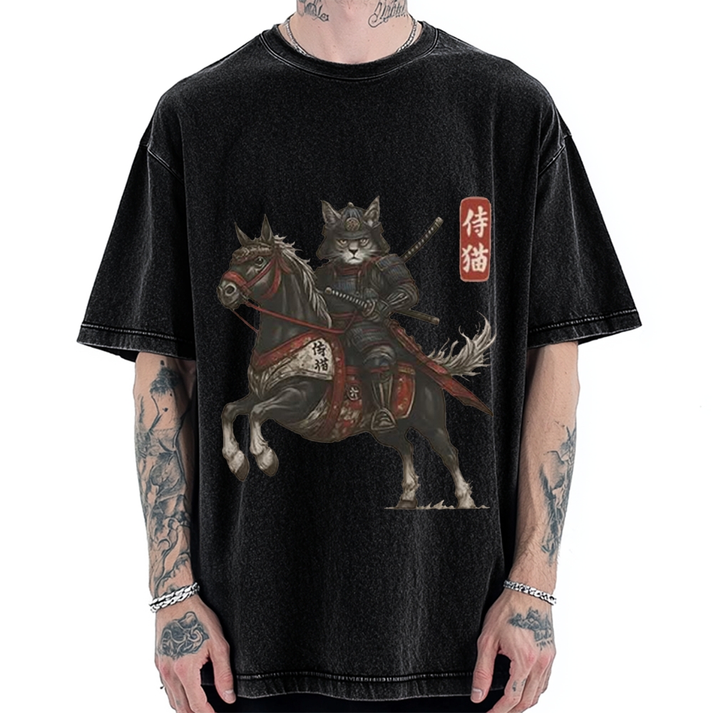Cat Samurai Japanese Art Vintage Washed T-shirt