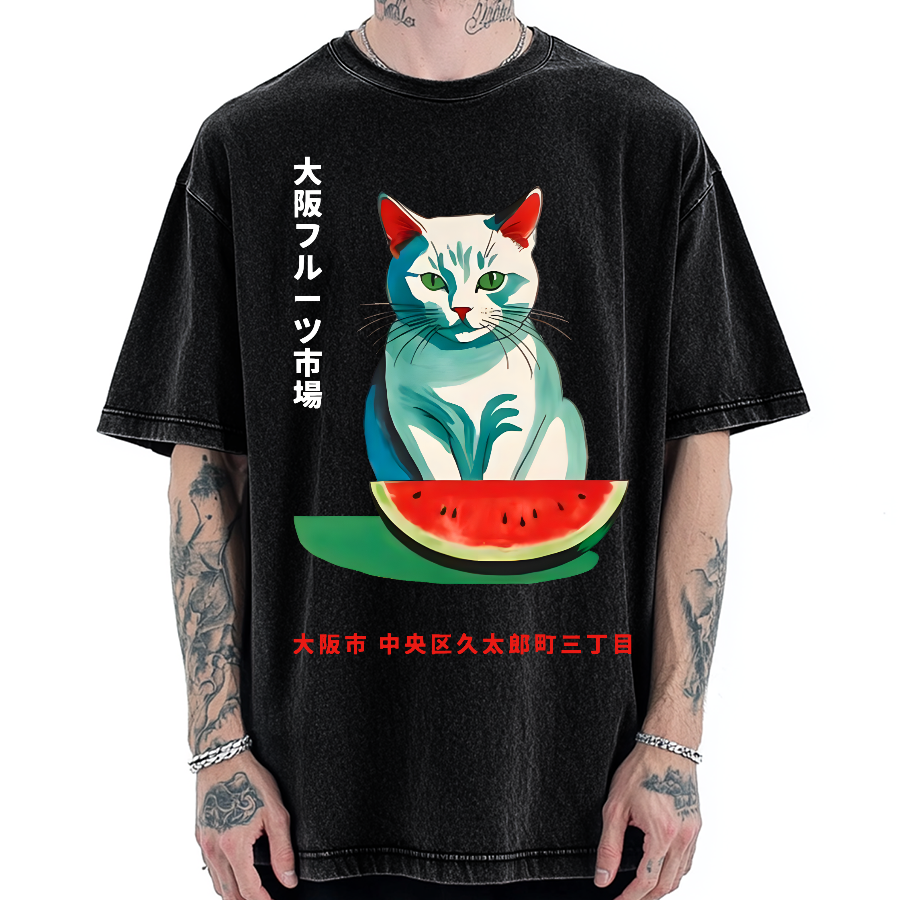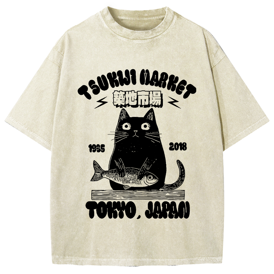 Tsukiji Market Cat Japan Vintage Washed T-shirt
