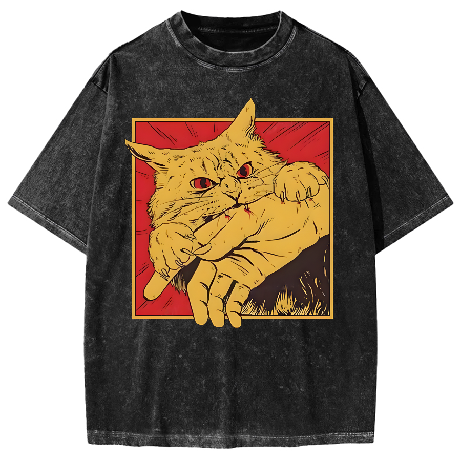 Retro Cat Biting Hand Vintage Washed T-shirt