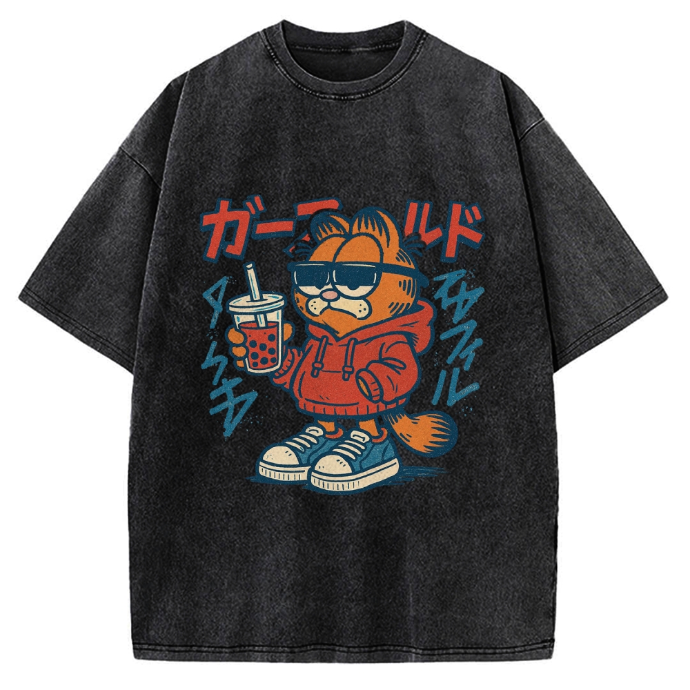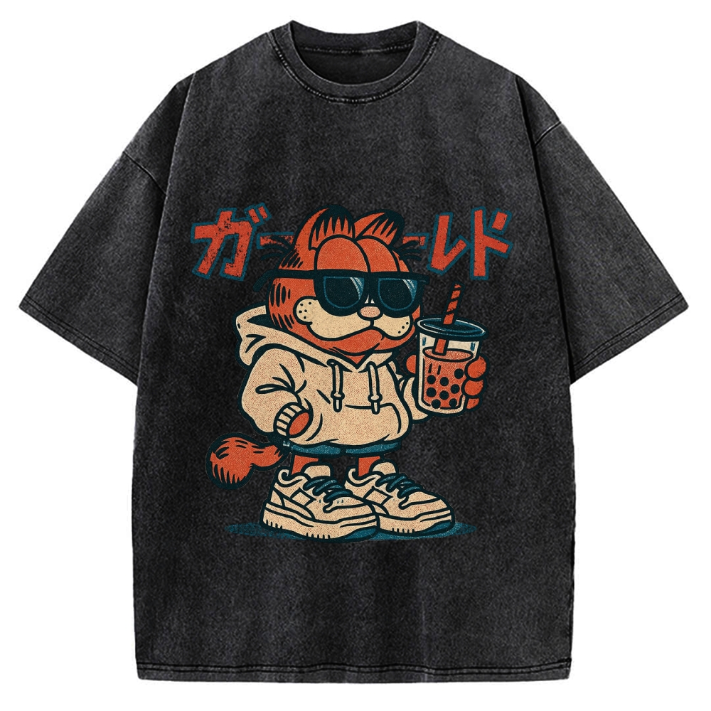 Bubble Tea Cat Japanese Vintage Washed T-shirt