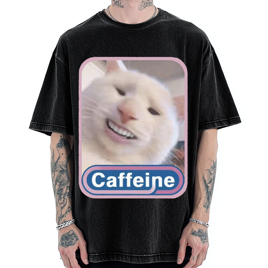Caffeine Laugh Meme Cat Funny Vintage Washed T-shirt