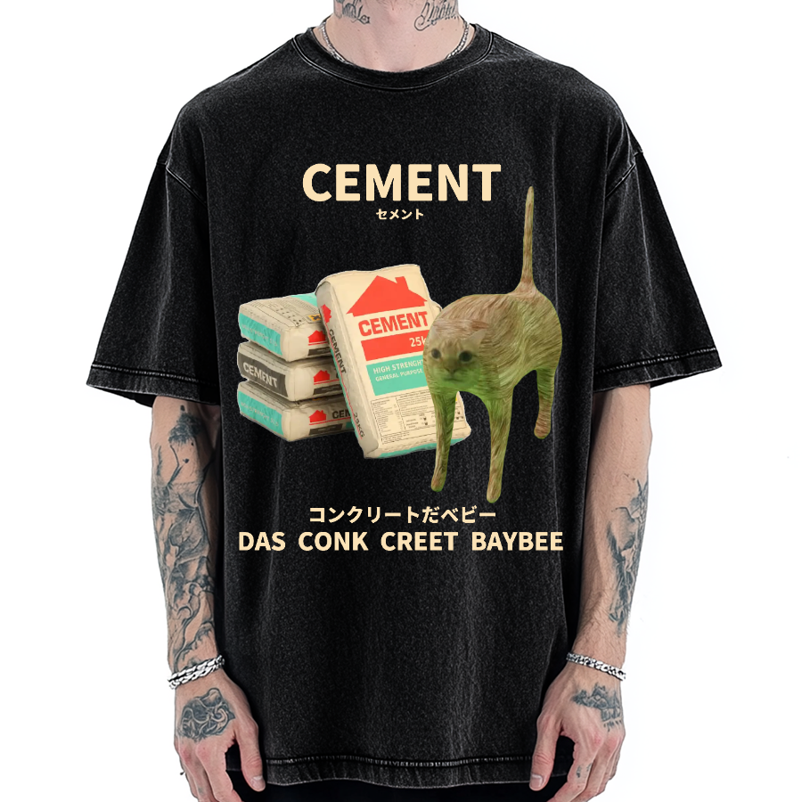 Cement Das Conk Creet Baybee Cat meme Vintage Washed T-shirt